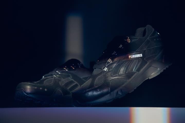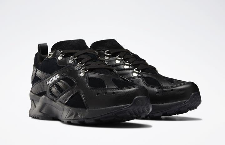 クッショニングに優れたこのモデルをベースとした新作「PLEASURES AZTREK(プレジャーズ アズトレック)」(1万4040円)は、カラフルな「CLUB C」とは対照的にオールブラックのカラーリングで金属パーツなども配置し、シックでクールなイメージにデザイン。こちらも、“PLEASURES” ロゴ入りです。