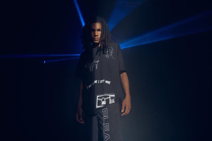 「PLEASURES」は、2015年にロサンゼルスで生まれたファッションブランド。ストリートシーンを代表するアレックス・ジェームズとヴラッド・エルキンが手掛けるアイテムはパンキッシュなデザインが特徴で、大胆なグラフィックプリントつきのTシャツやフーディなどから火がつき、LAを中心に人気を博しています。