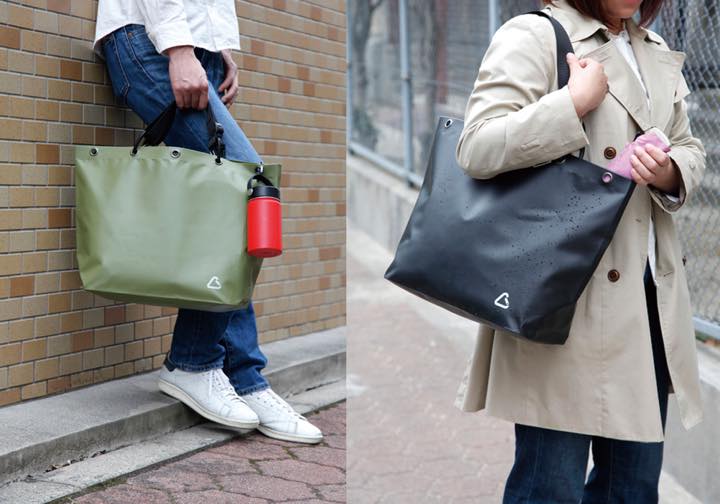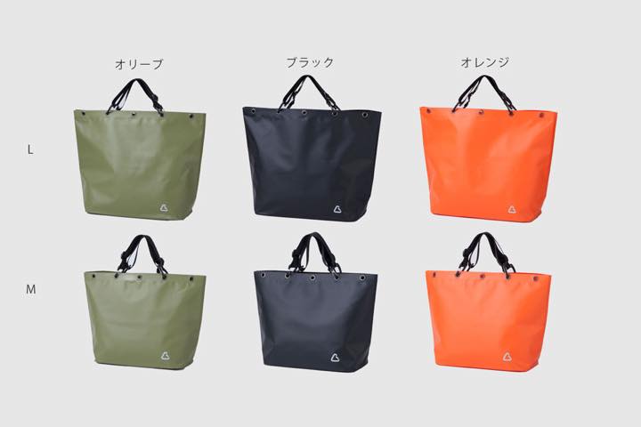 しかもこのトート、注目すべきはその素材。テントや横断幕などで使用されるターポリン素材が使われているので、耐水性・耐久性が抜群なんです。雨や汚れを弾く高い防水性で、お手入れも簡単。地面が濡れていても安心して使えるので、通勤・通学はもちろん、アウトドアやガーデニングでも大活躍。