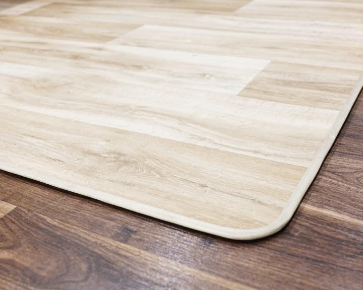 表面は汚れや水分に強いラグジュアリービニル製だから、うっかり飲み物などをこぼしてもサッとひと拭きすれば大丈夫。元々はピアノの打鍵音やペダル音が気になる人のためのアイテムですが、傷や変色に強く、防臭・抗菌機能も備えているので、ダイニングセットの下に敷くのにもよさそうです。