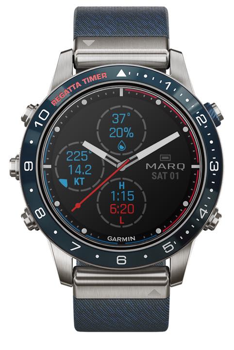 「MARQ CAPTAIN(マーク キャプテン)」(26万円/税別)は、世界の海における高度な航海機能を備えたGPSウォッチ。海洋レース時には、GPS技術により強化されたレガッタタイマーが、高い精度でスタート地点を表示するほか、タックアシスト、落水事故救命アシストなども装備。