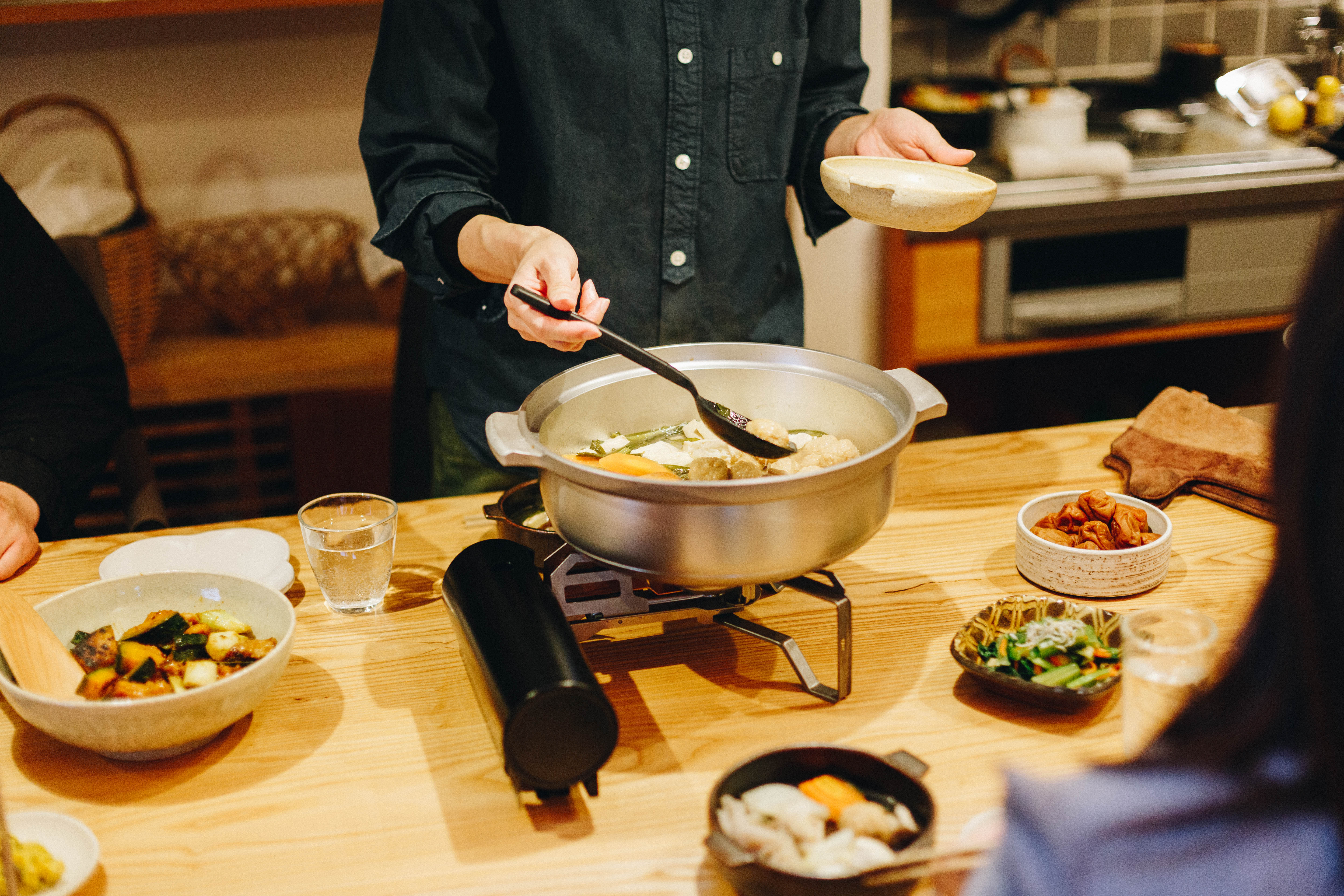 さて、五徳を展開すれば鍋でも置ける安定感があり、アウトドアだけでなく家で調理をする際にも力を発揮します。従来の卓上コンロを覆すようなコンパクトさと、スタイリッシュさをあわせ持つバーナー。