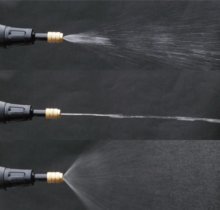 先端のノズルを回すことで、水流をストレート水流↔シャワー水流↔噴霧に無段階で切り替えられます。ストレートの水流は部分汚れを落としやすく、外出先や近くに水道のない駐車場で、虫汚れや泥などを落とす部分洗車に適しています。