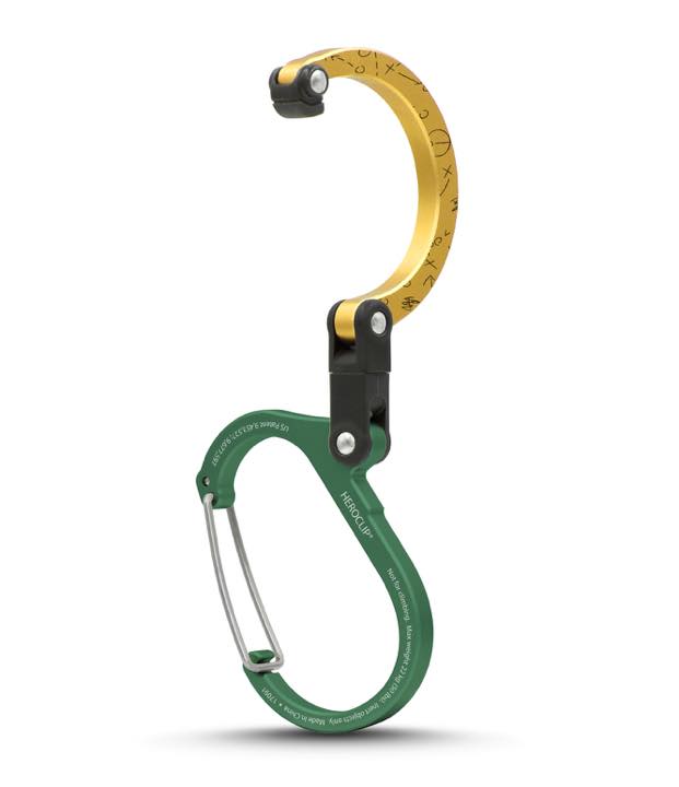普通のカラビナでは繋いだモノを外す時に開閉部分を指で押さえなくてはなりませんが、この「HEROCLIP」ならフックをカラビナで固定しておけばOK、かける時はもちろん、外す時もさっと片手で外せます。