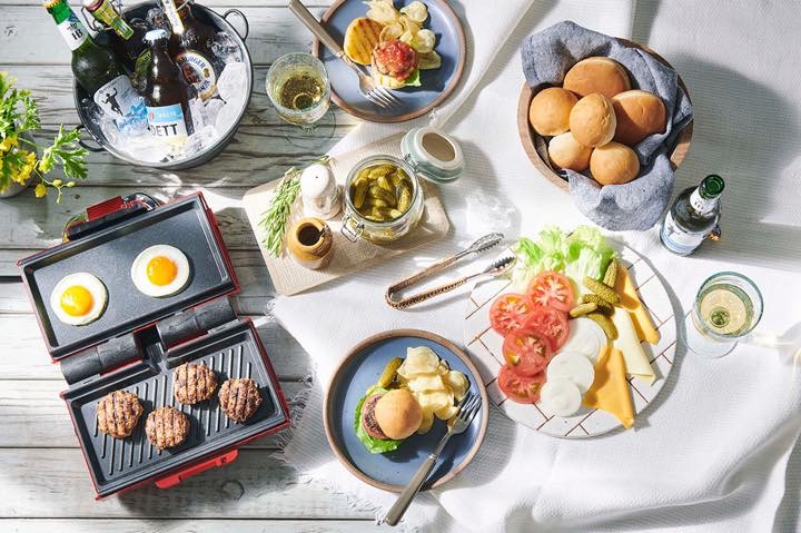 それぞれが独立した2面プレートは、使い分けも可能。2種類ある付属のプレートのひとつ「凹凸プレート」は、凹凸で食欲をそそるあの焼き目をきれいにつけられるのはもちろん、余分な脂を落としてくれます。もうひとつの「フラットプレート」は炒め物やパンケーキなどを作るのにも便利。片側で凹凸プレートを使ってハンバーグを焼きながら、もう片側でフラットプレートを使ってバンズを温めるなど、同時に調理を進められます。片面には温度調整機能が付いているので、できあがった料理の保温だってできちゃいますよ。