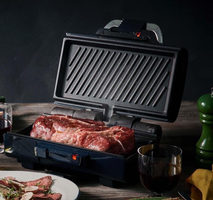 折り畳んで挟み焼きができるので、裏返す手間もなく、分厚いステーキを短時間でこんがりと焼き上げられます。挟むことで上下から熱を加えられるので、お肉はもちろん、魚や野菜、さらに家ではなかなか難しい焼き鳥も串ごと挟んでこんがりおいしく仕上がります。