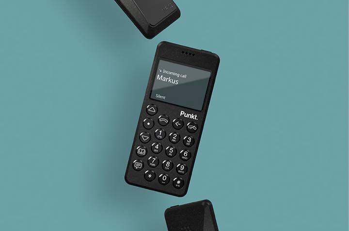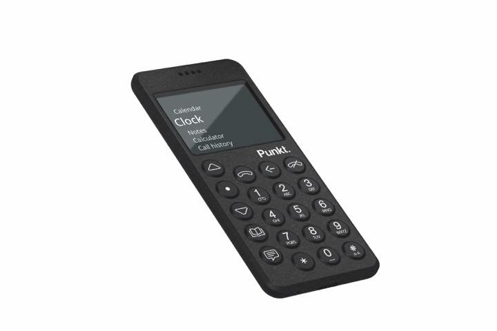 オールブラックのカラーリングがこれまでにない強烈な個性を放つ「Punkt. MP02」。幅51.3mm高さ117mmと、片手で操作しやすいコンパクトな縦長筐体で、重さは約100g。外装にはグラスファイバーを採用、高い耐摩耗性とともに独特の質感を楽しめます。極めてミニマルにデザインされた円形キーはバックライト付きで、左側1列に機能ボタンを並べた独特の配置も個性的です。