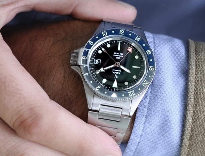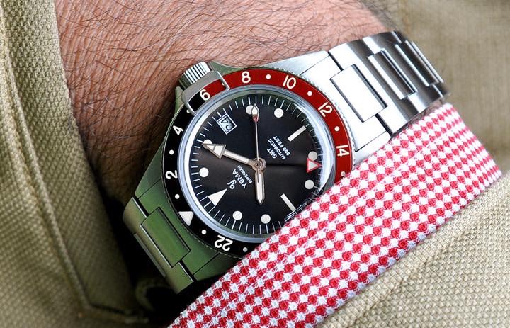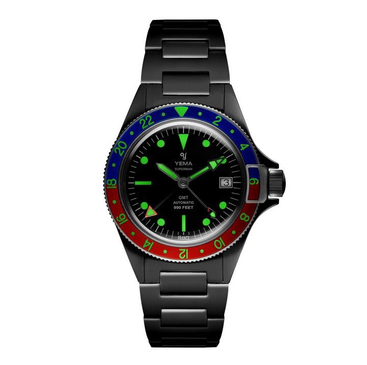 7月22日より予約開始となる「スーパーマン・ヘリテージGMT」(20万5200円)は、その名の通りGMT(メインとサブ、2つの時間帯を表示)機能を搭載したダイバーズウォッチです。