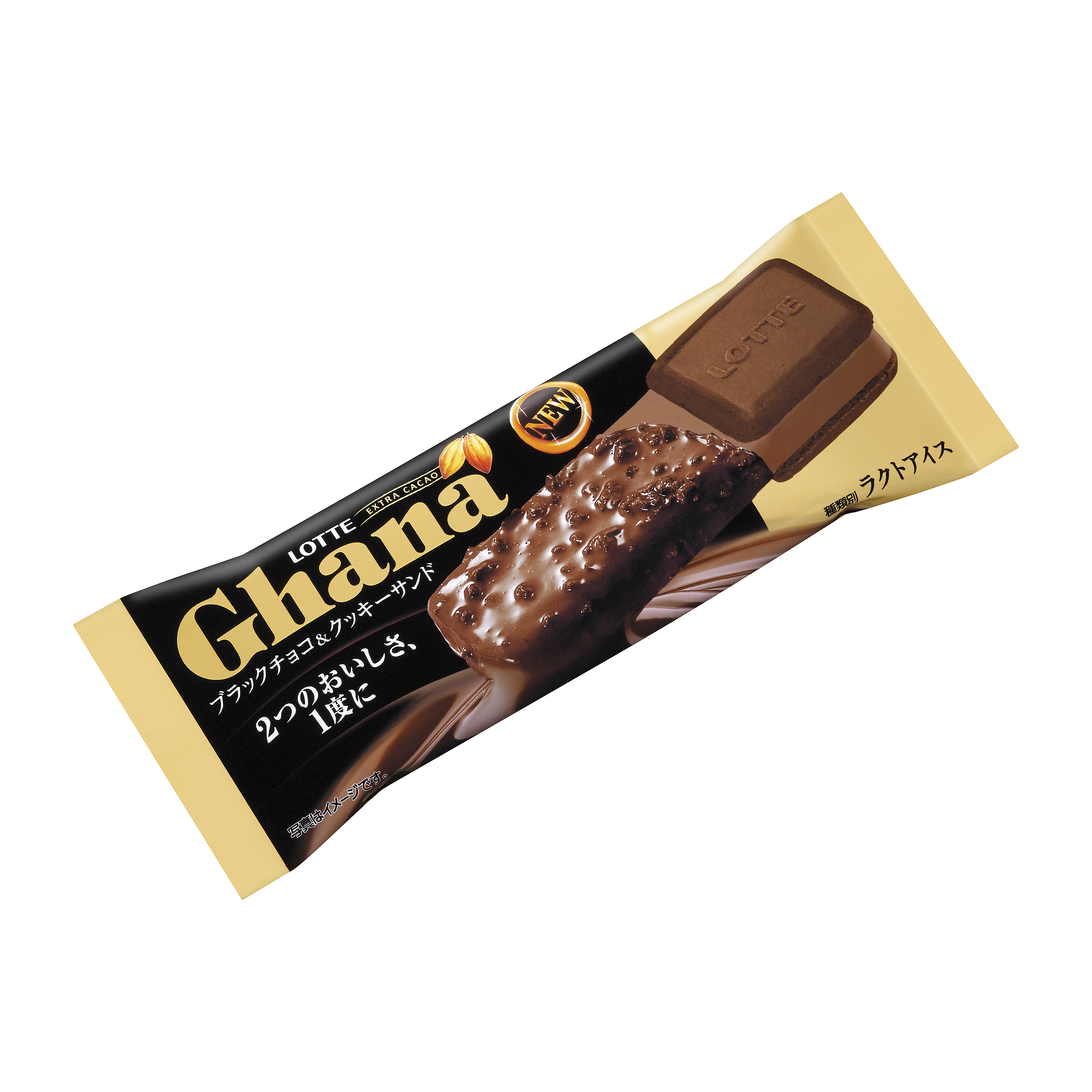 ロッテアイスから登場のアイスクリーム2種は芳醇なビターテイストが特徴。「ガーナ贅沢仕立てブラック」は、二層のチョコレートでチョコアイスを包んだアイスバー、6本入りで453円。