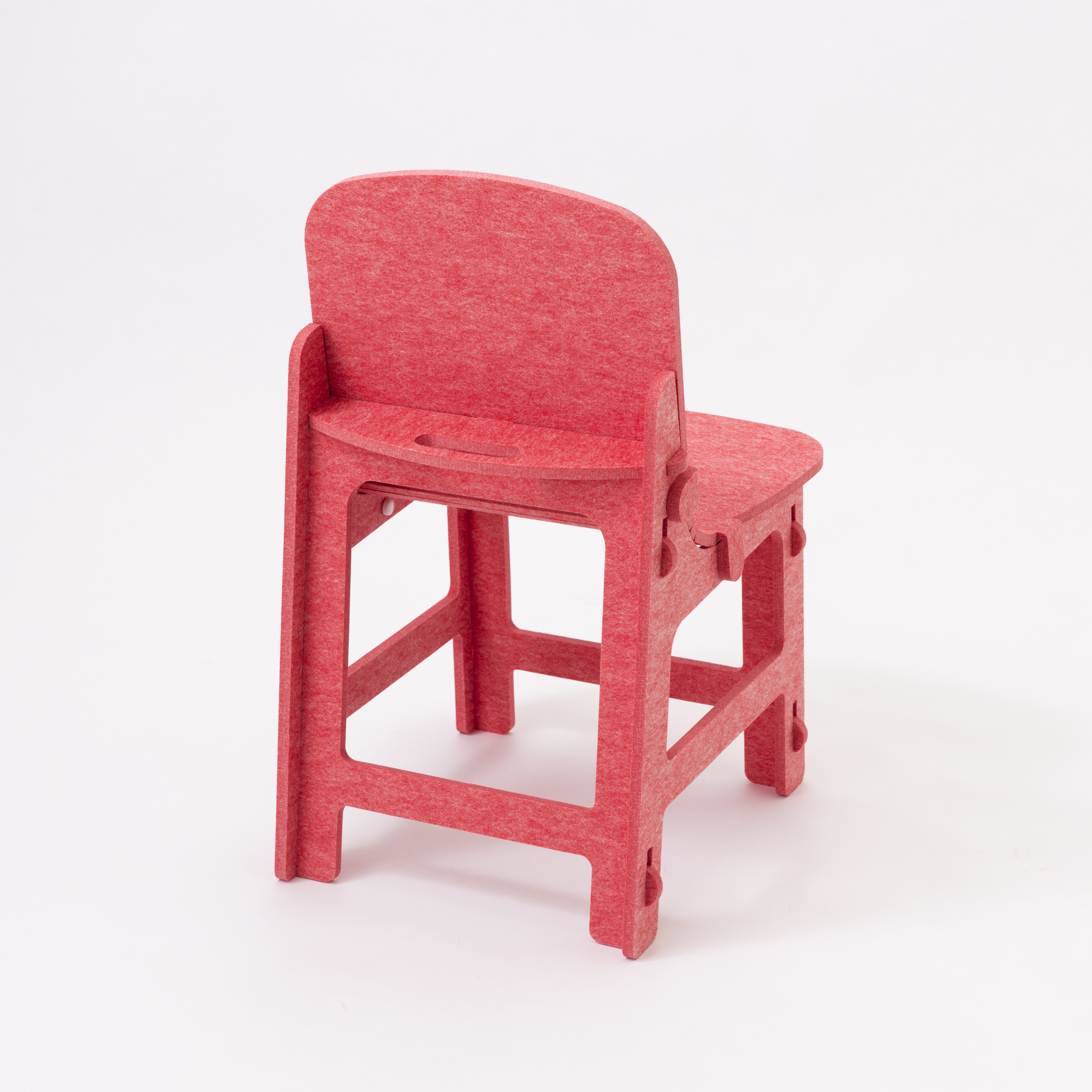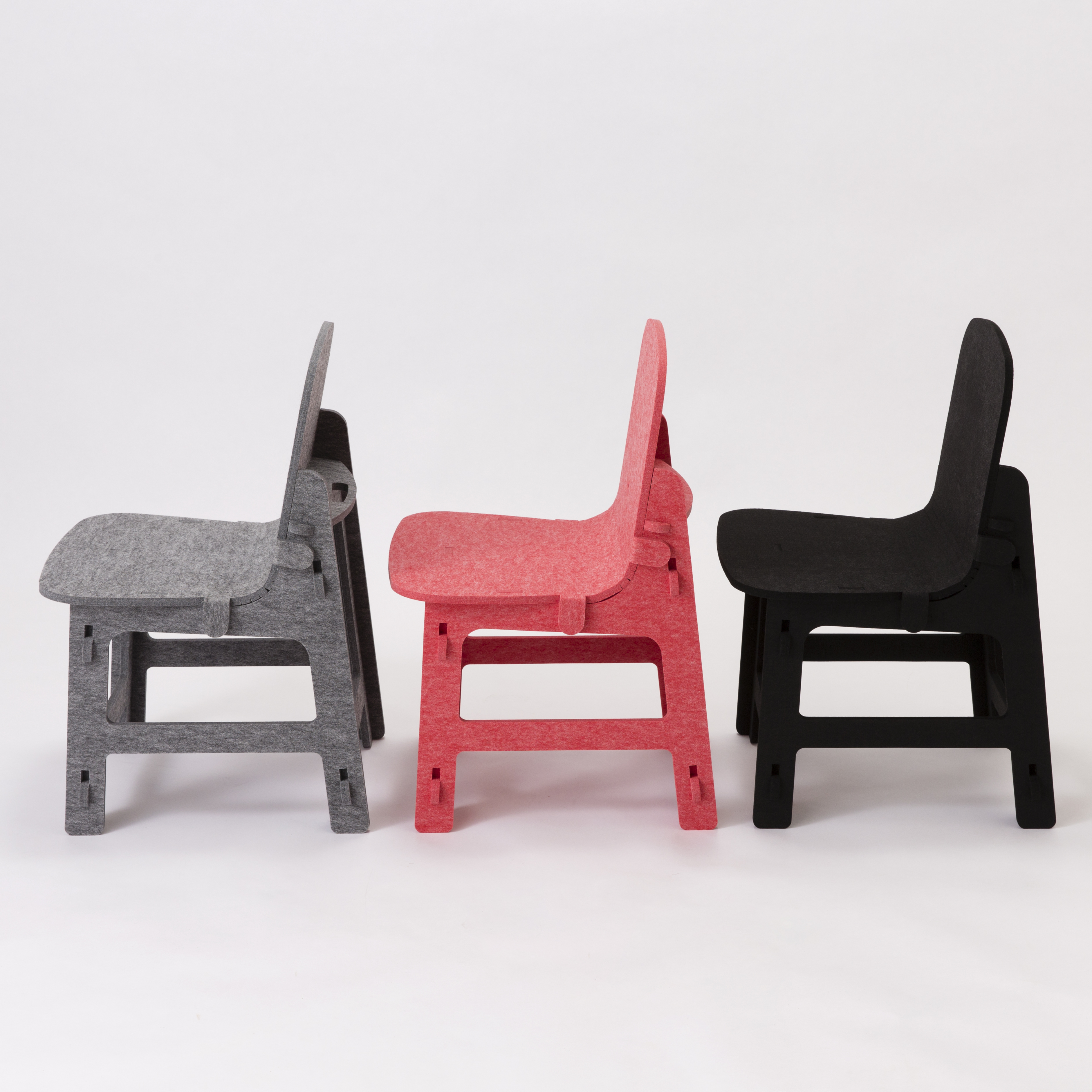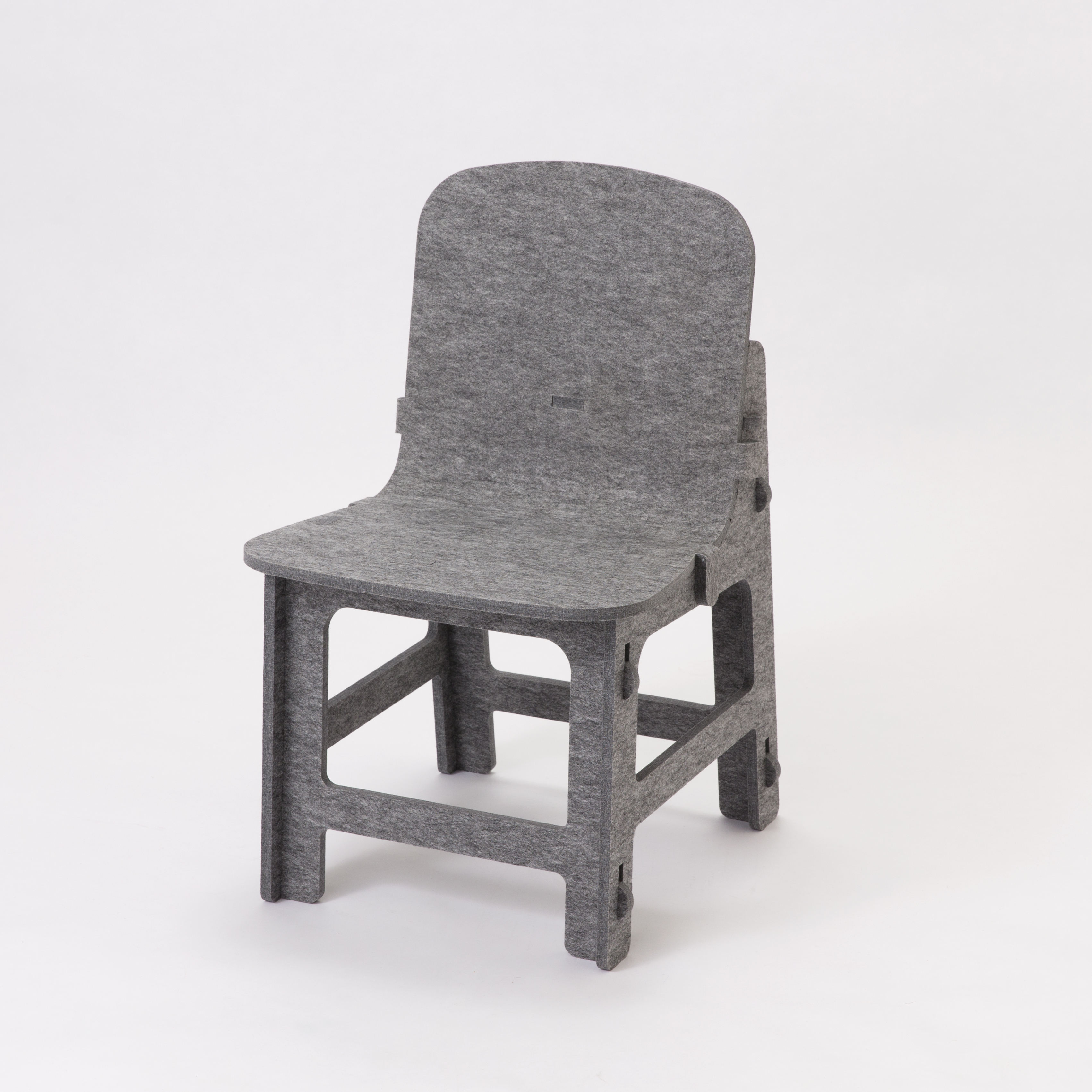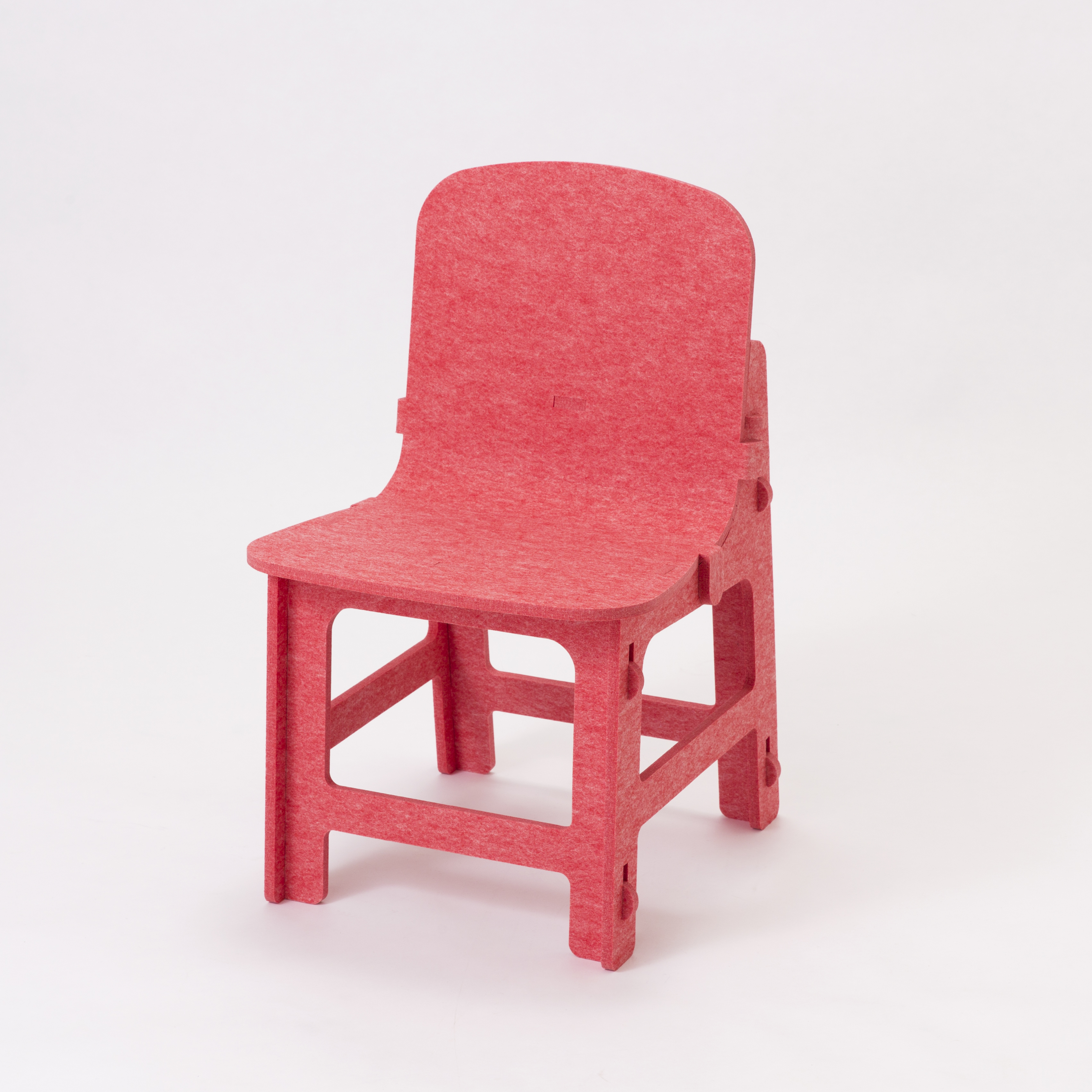 アボードから発売された「RK - Chair」は、手触りの柔らかいフェルトで作られた椅子です。子どもがぶつかっても安全で、床や壁を傷つけることもありません。折りたたみチェアだと子どもが手を挟みそう、という心配もありますが、心配無用。