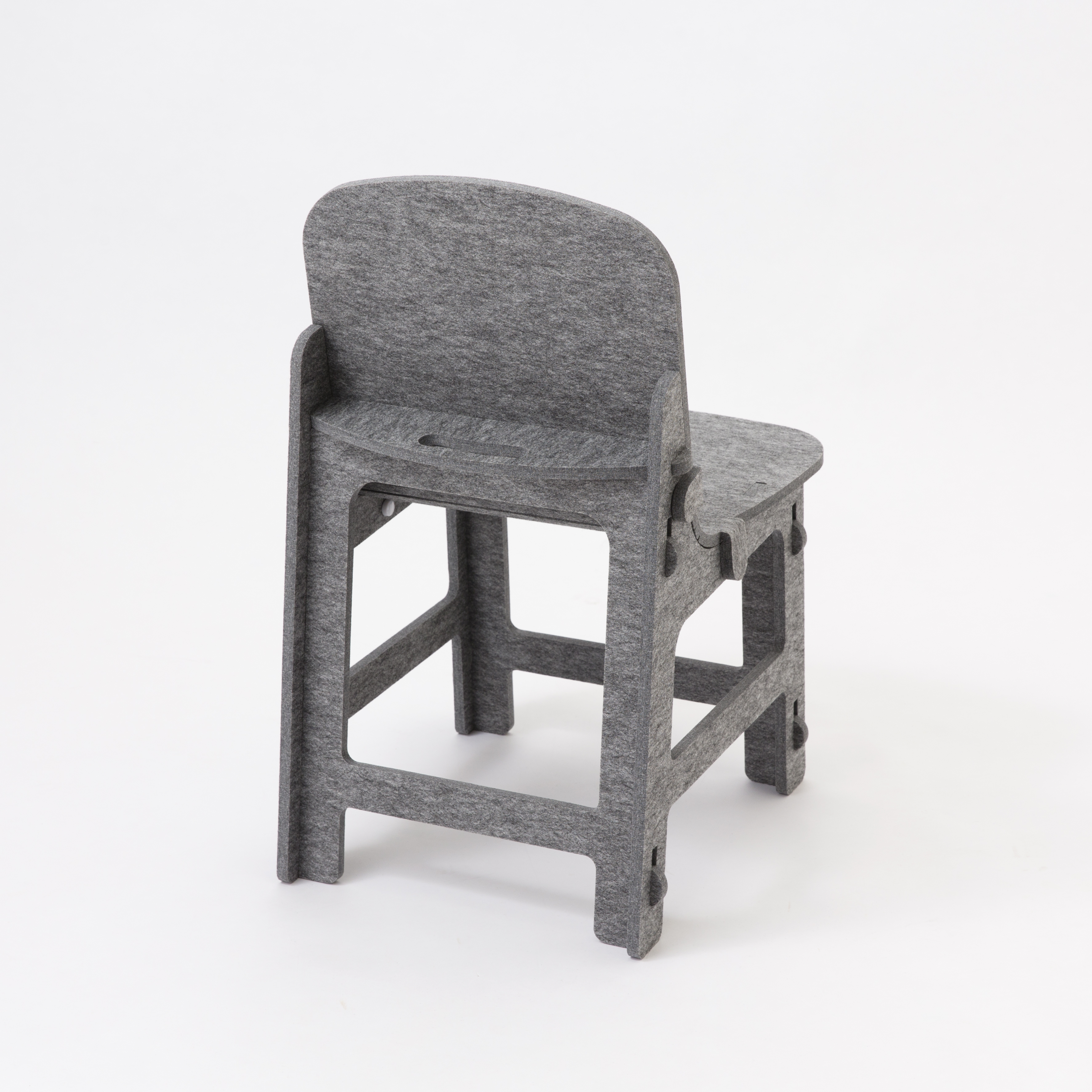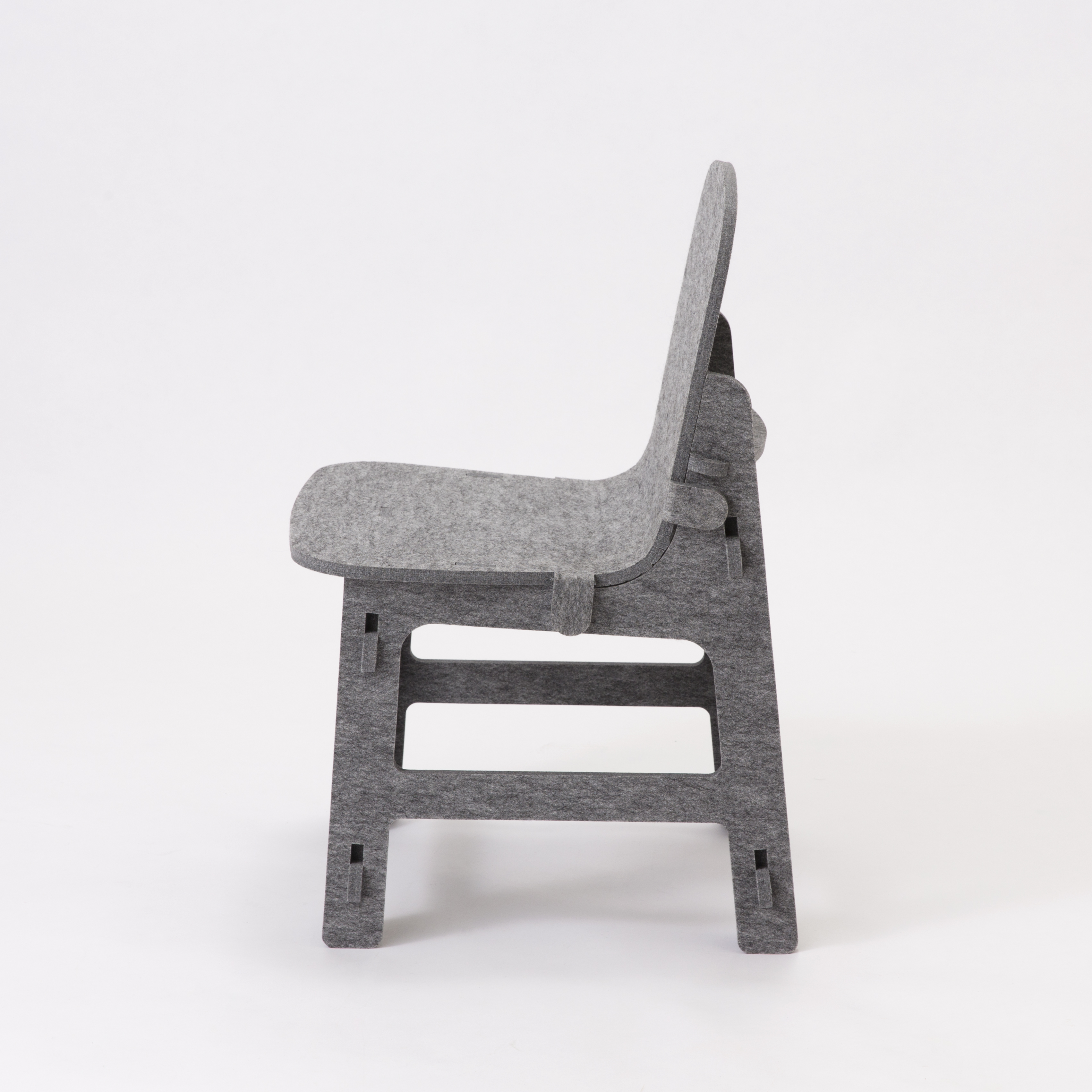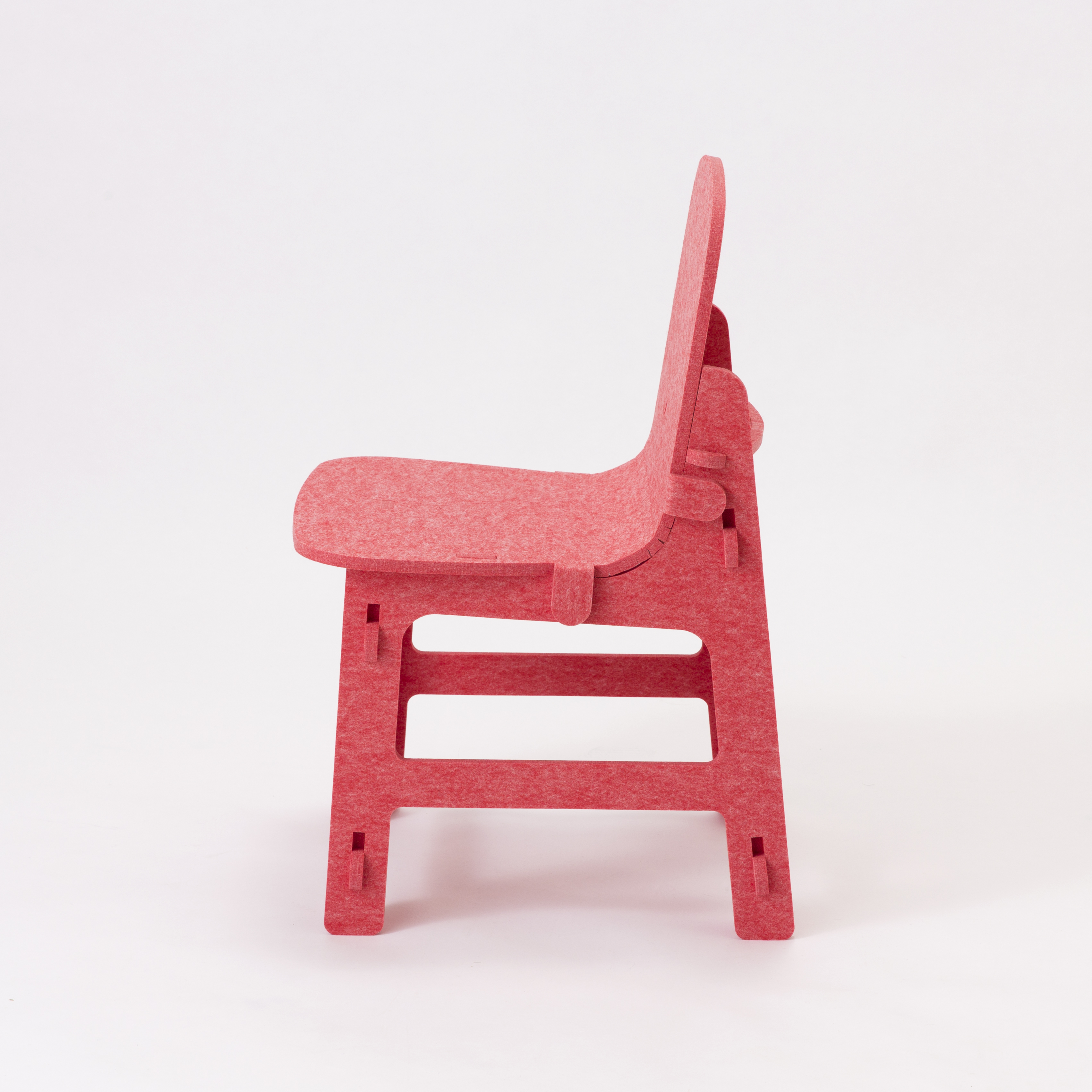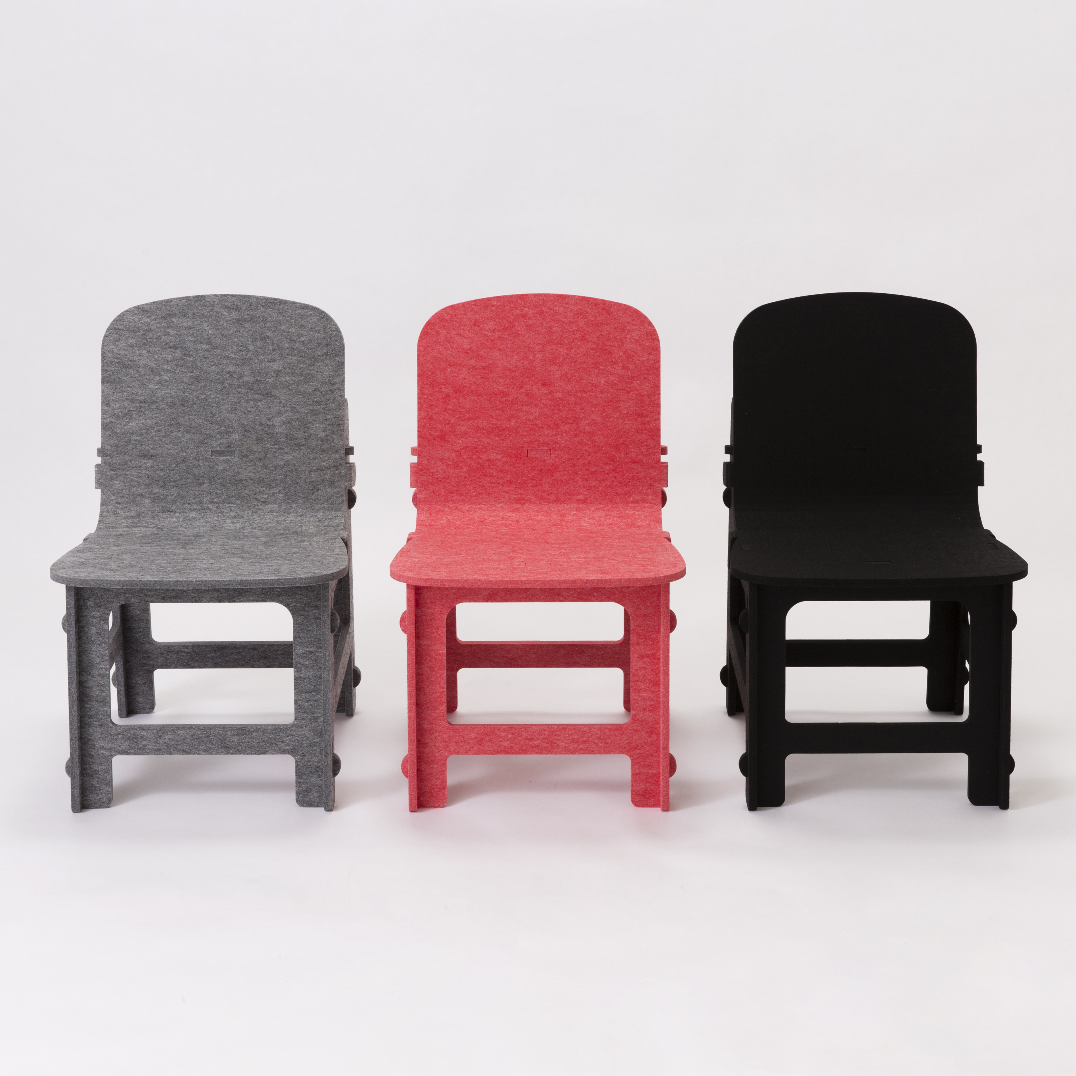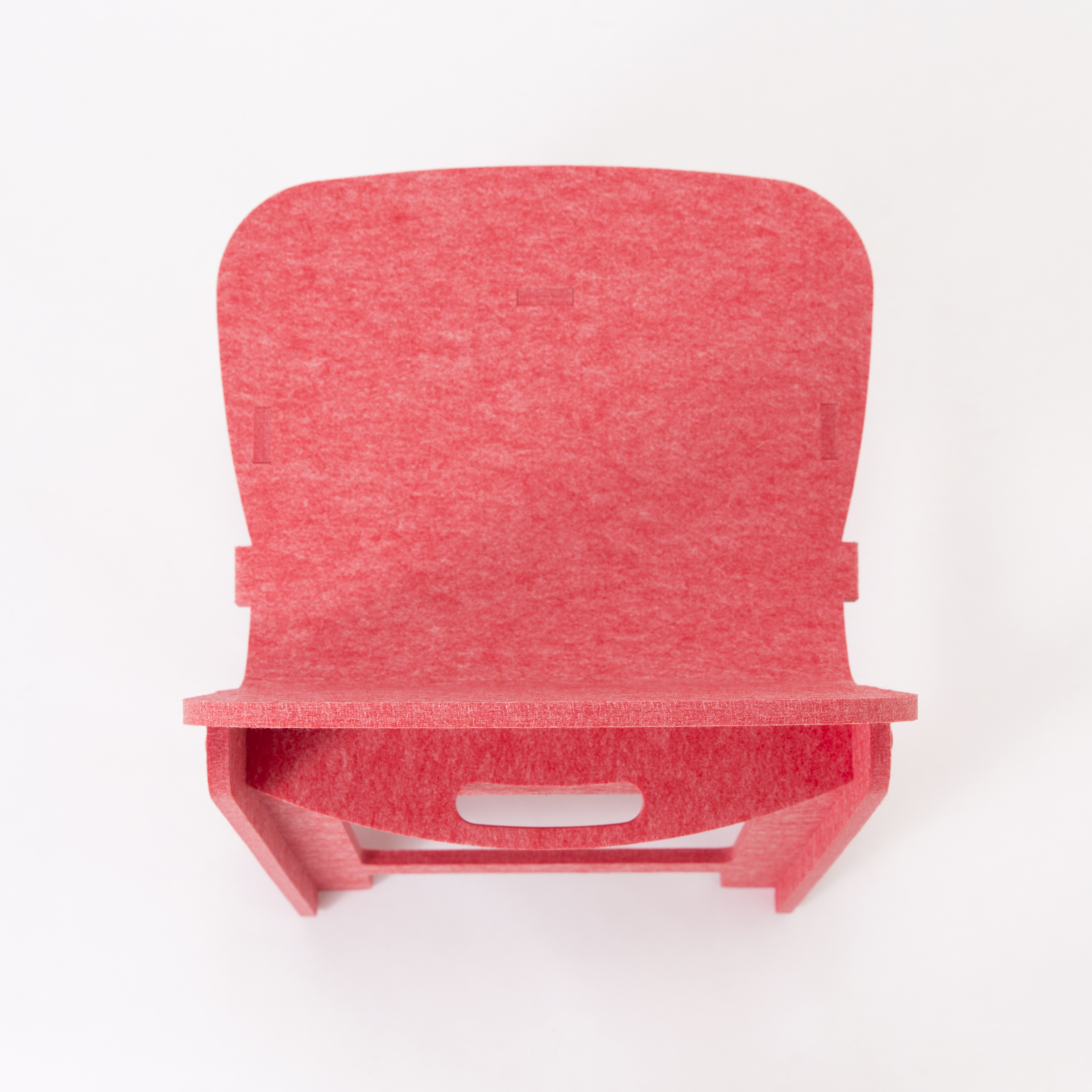 アボードから発売された「RK - Chair」は、手触りの柔らかいフェルトで作られた椅子です。子どもがぶつかっても安全で、床や壁を傷つけることもありません。折りたたみチェアだと子どもが手を挟みそう、という心配もありますが、心配無用。
