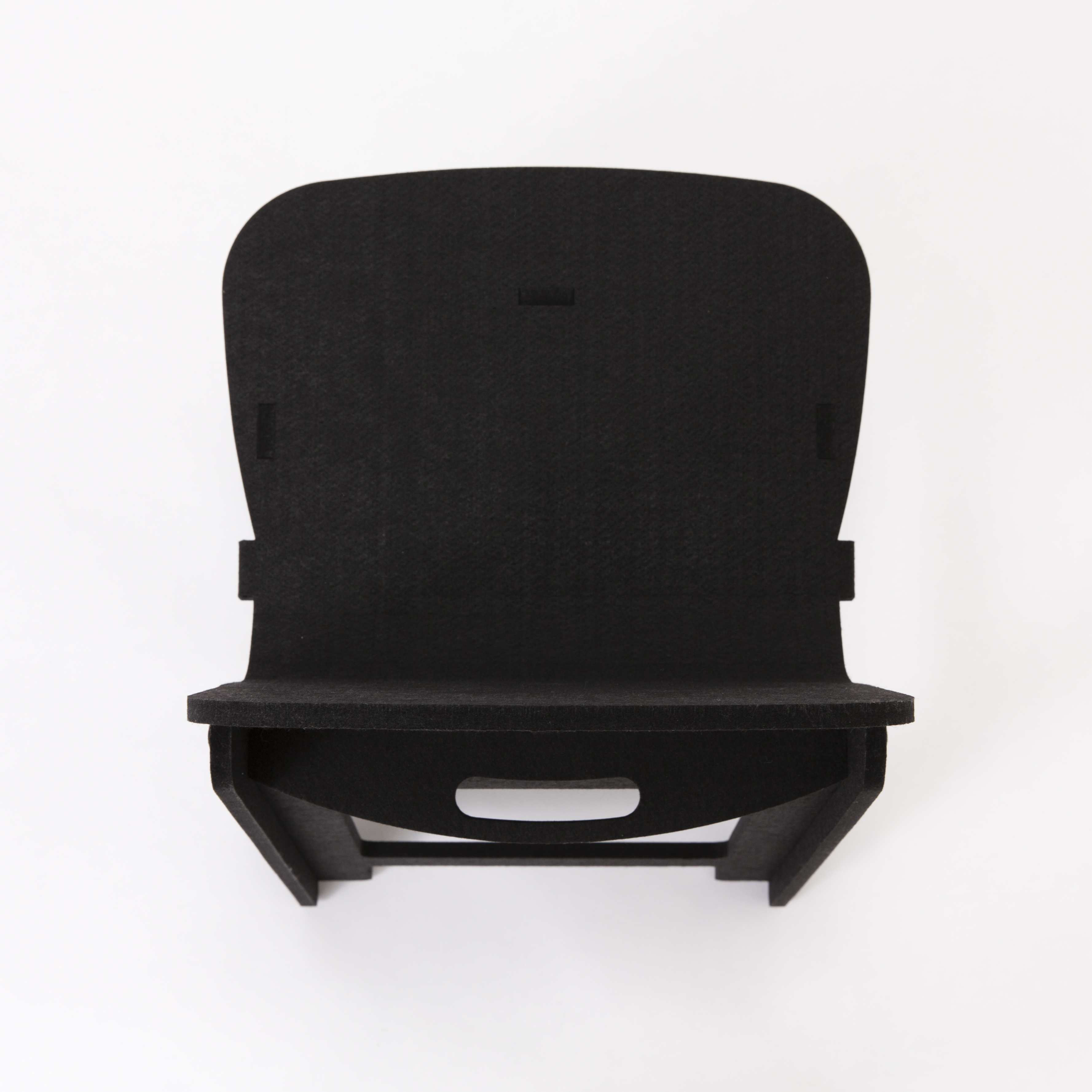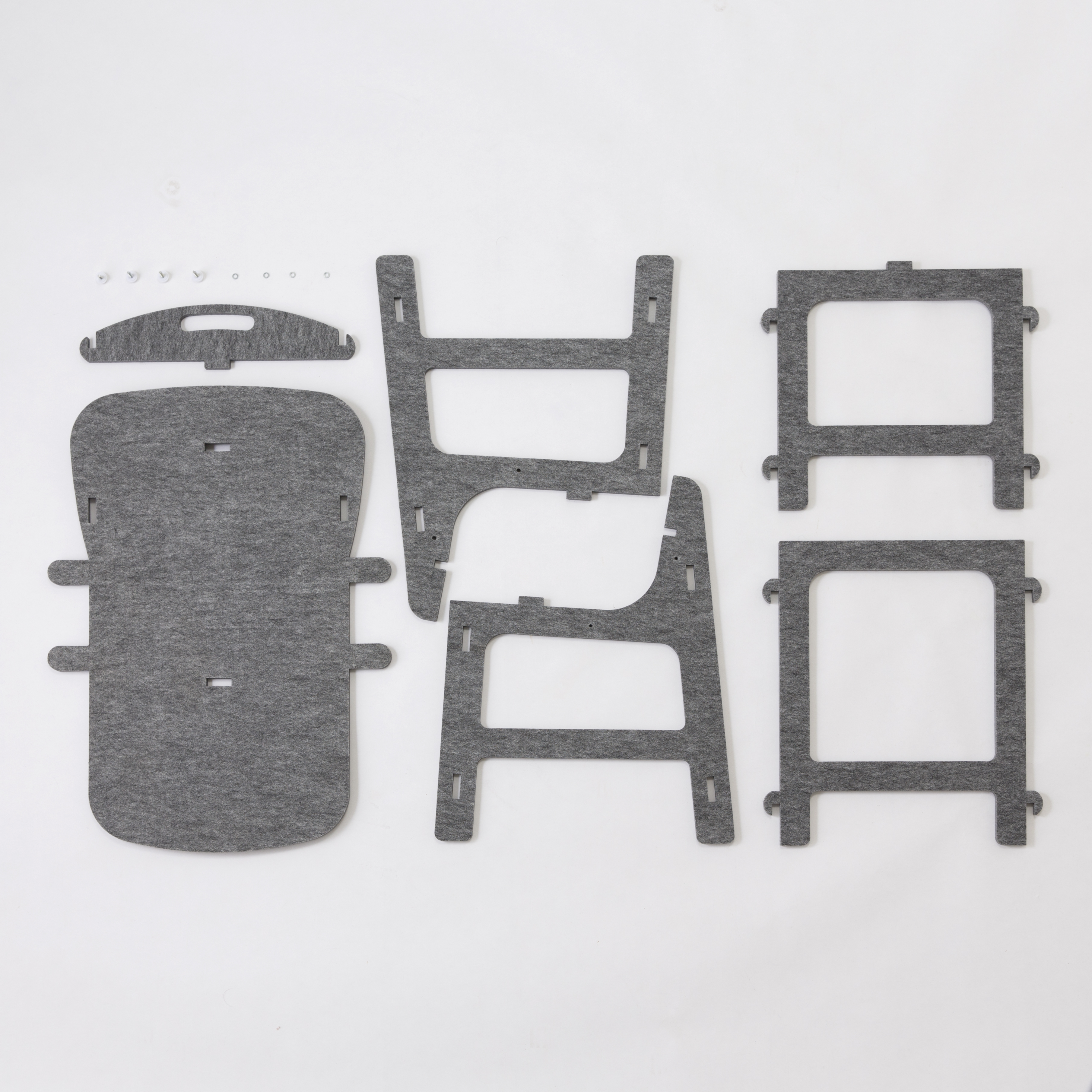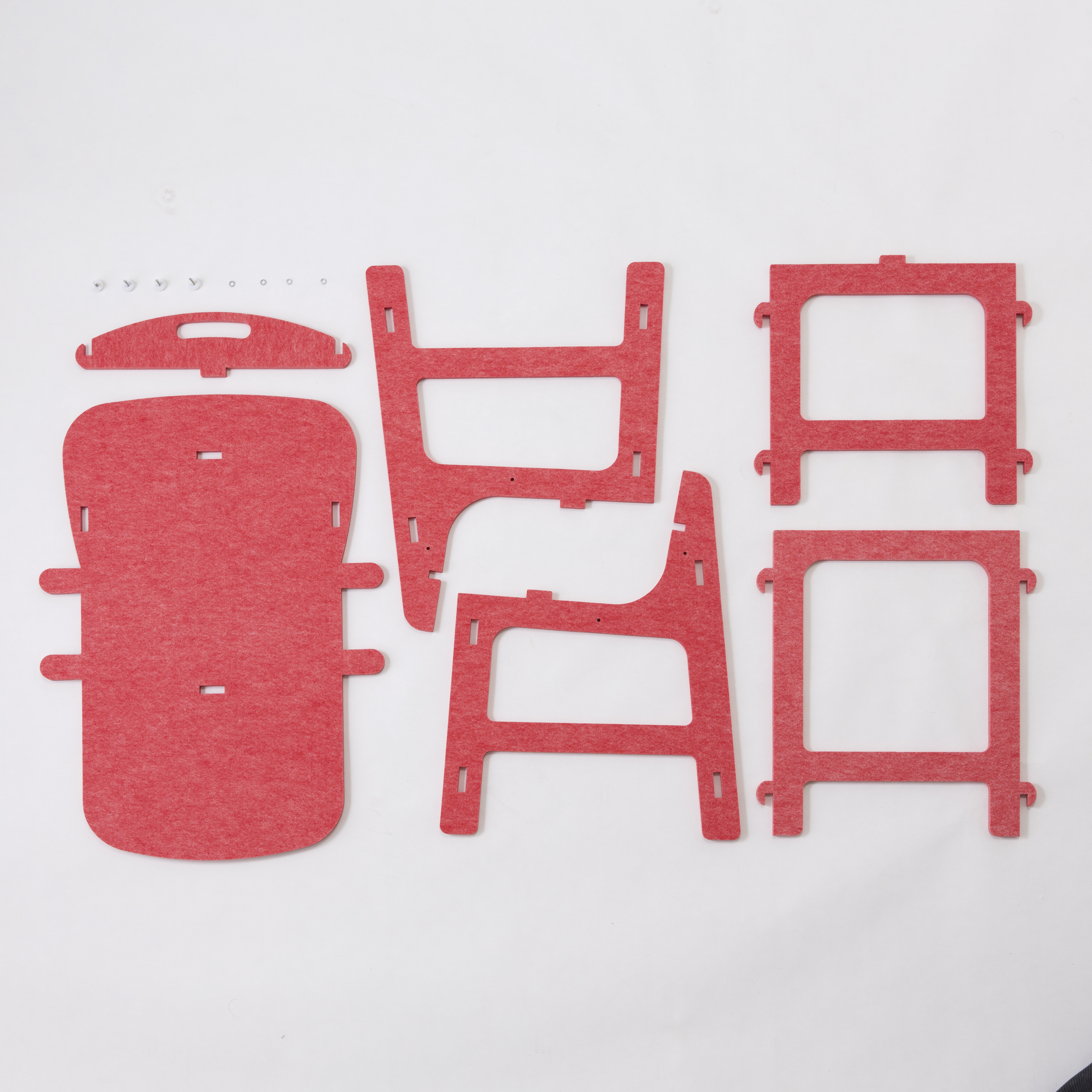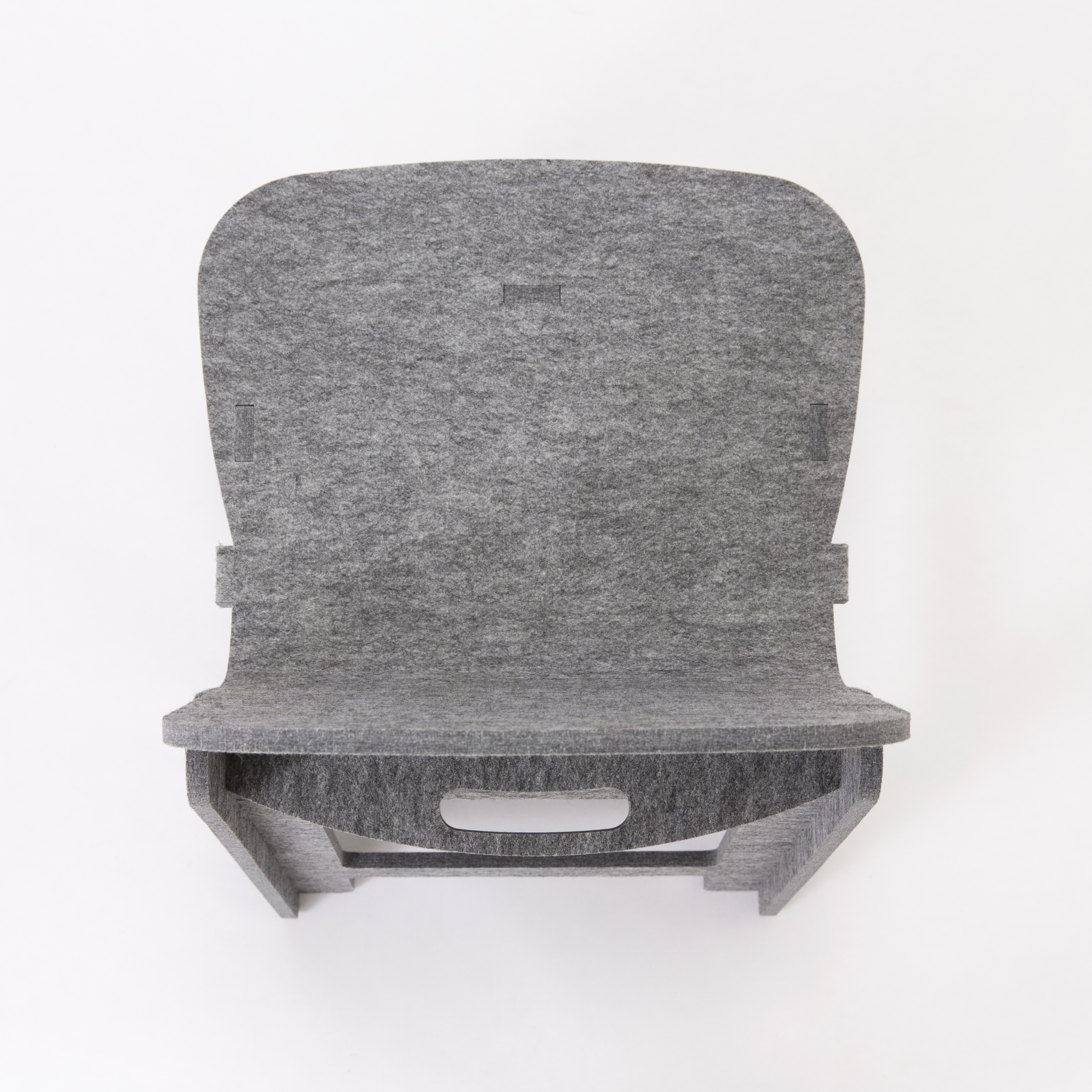 アボードから発売された「RK - Chair」は、手触りの柔らかいフェルトで作られた椅子です。子どもがぶつかっても安全で、床や壁を傷つけることもありません。折りたたみチェアだと子どもが手を挟みそう、という心配もありますが、心配無用。