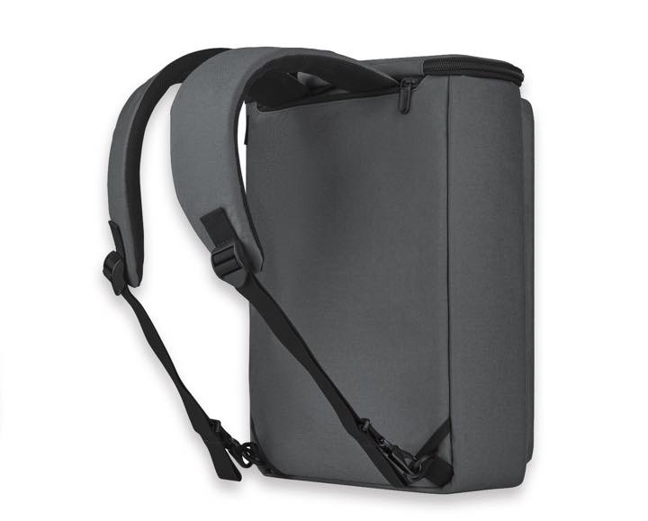 ▲バックパック時には、 ハンドルをポケットに完全収納可能