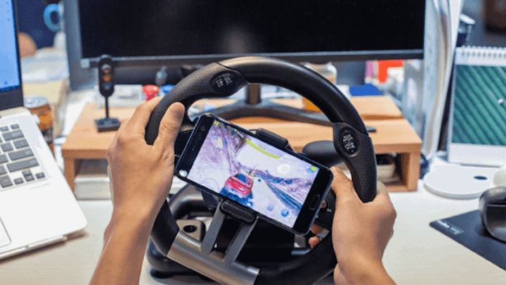 クラウドファンディング・Makuake(マクアケ)にて支援受付中の「Serafim R1/R1+」(6495円〜 8月17日現在)は、今までありそうでなかったスマホ向けのレースゲーム用ハンドルコントローラー。スマホで白熱のレースが体感できます。