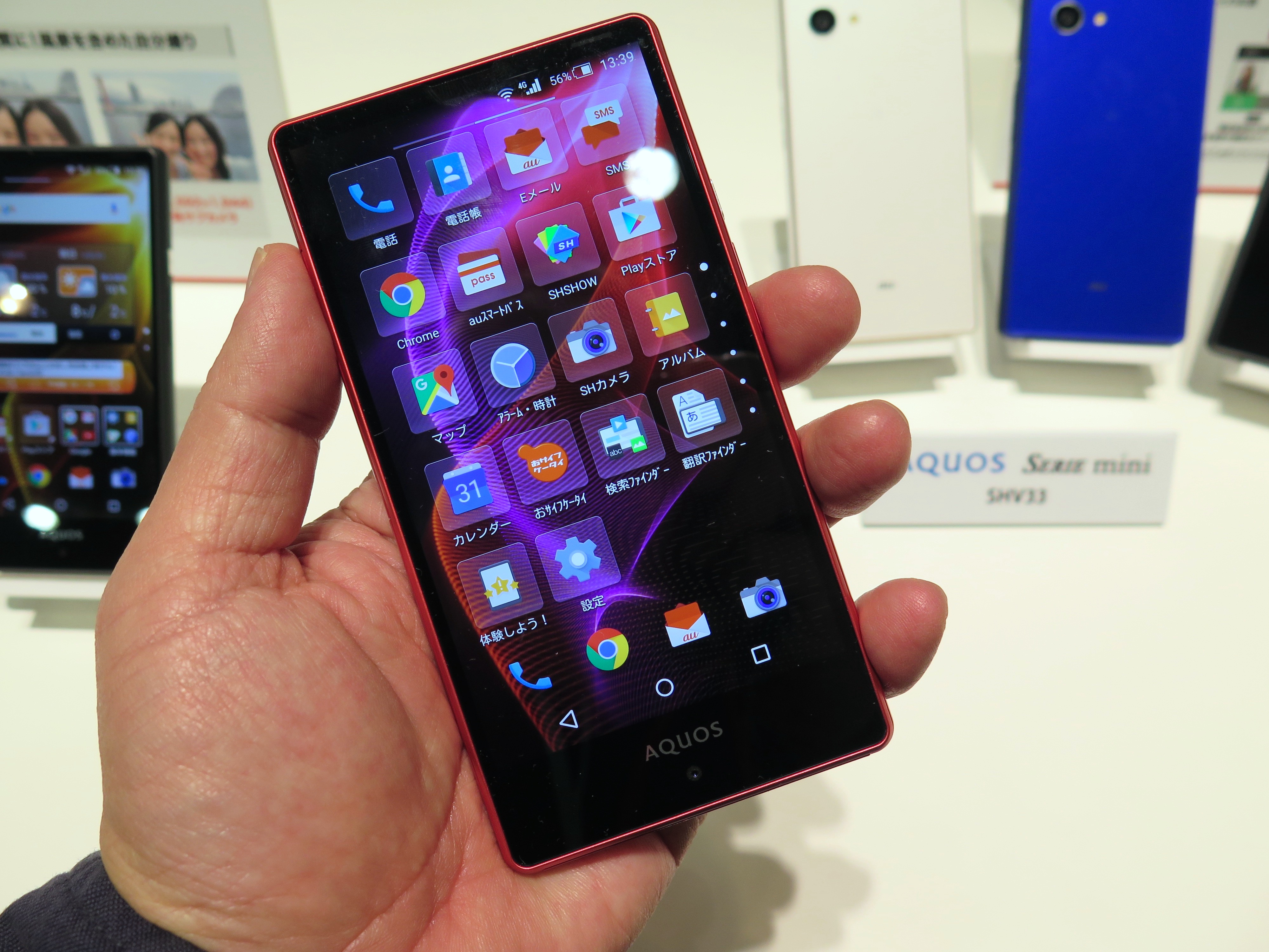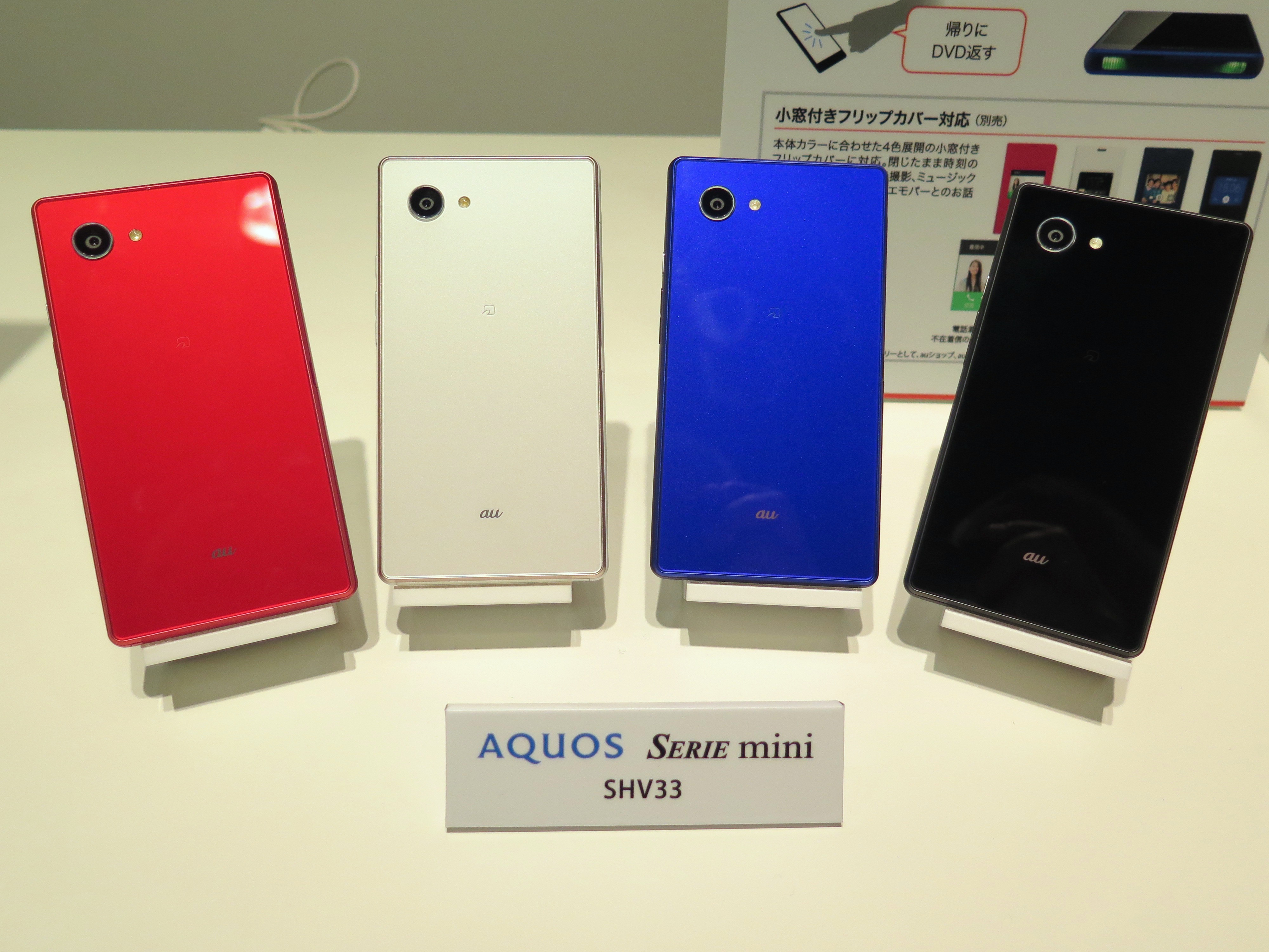 「AQUOS SERIE mini SHV33」は、シャープ製のコンパクトな高性能スマホ。約4.7インチのIGZOディスプレイを搭載し、しかも、従来モデルに比べて2倍の120Hz駆動を実現しています。