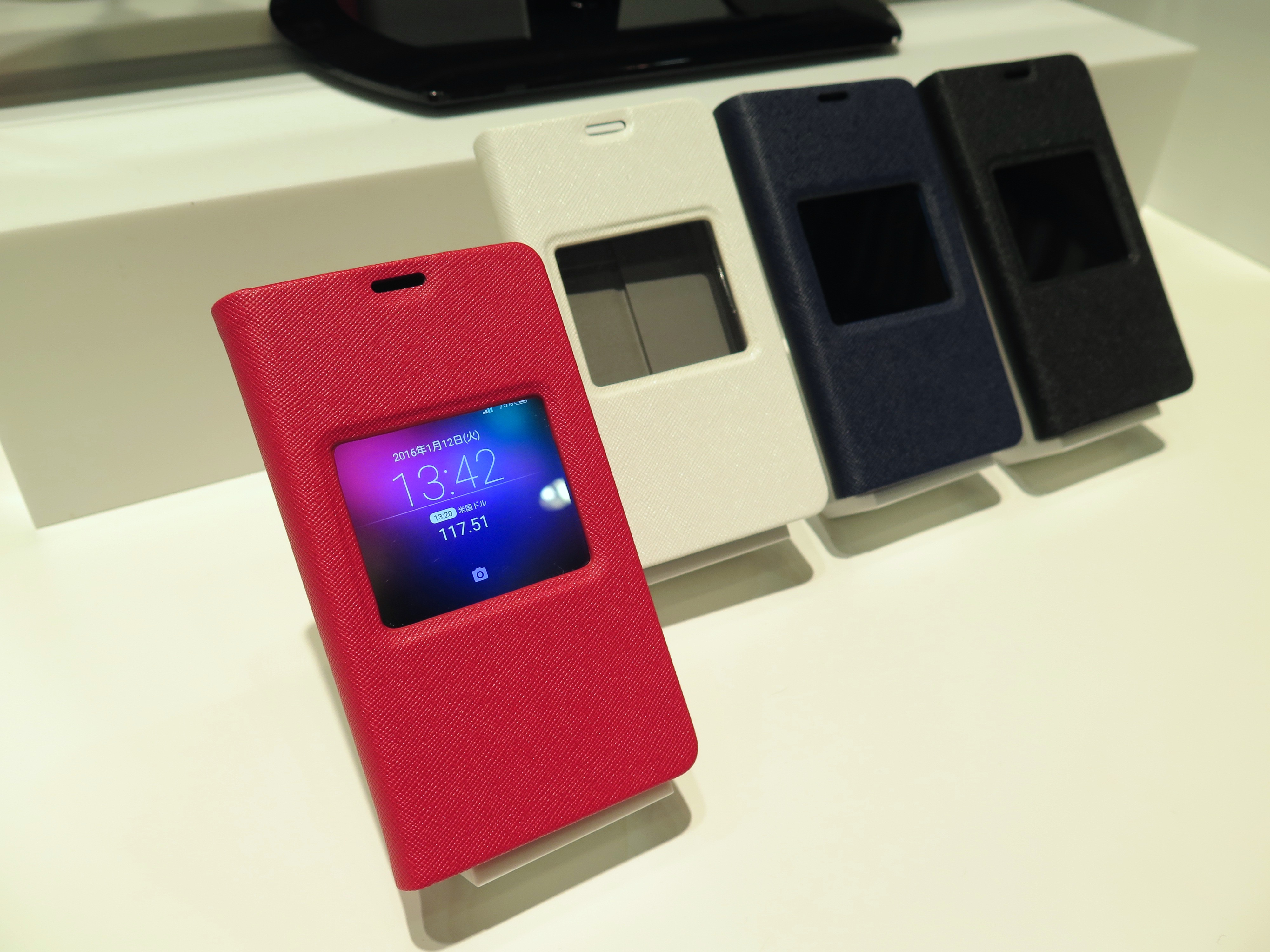 カラバリは、スカーレット、ホワイト、サファイア、ブラックの4色。窓付きのケースも発売され、閉じたままでカメラを起動して写真を撮ったり、独自の音声アシスト機能「エモパー」を活用したりできます。