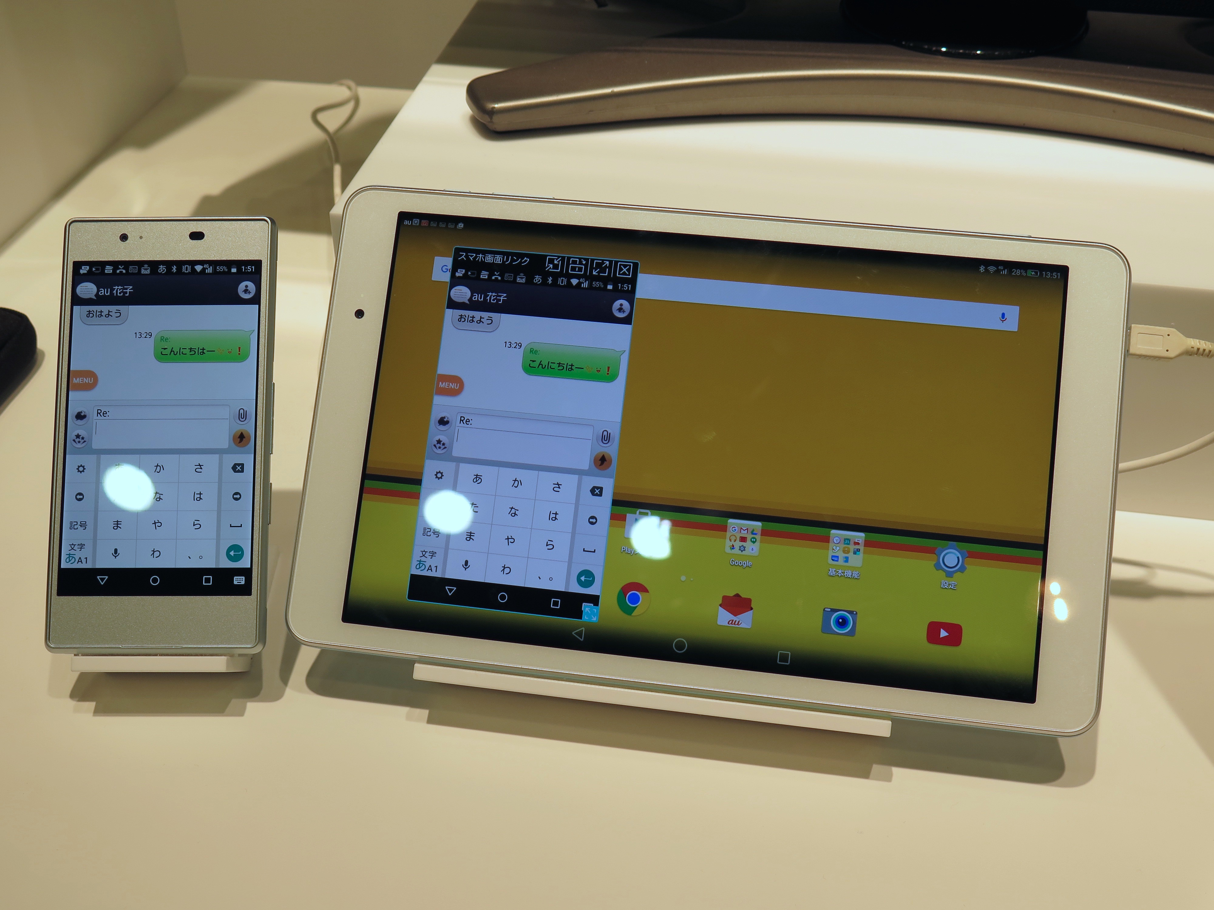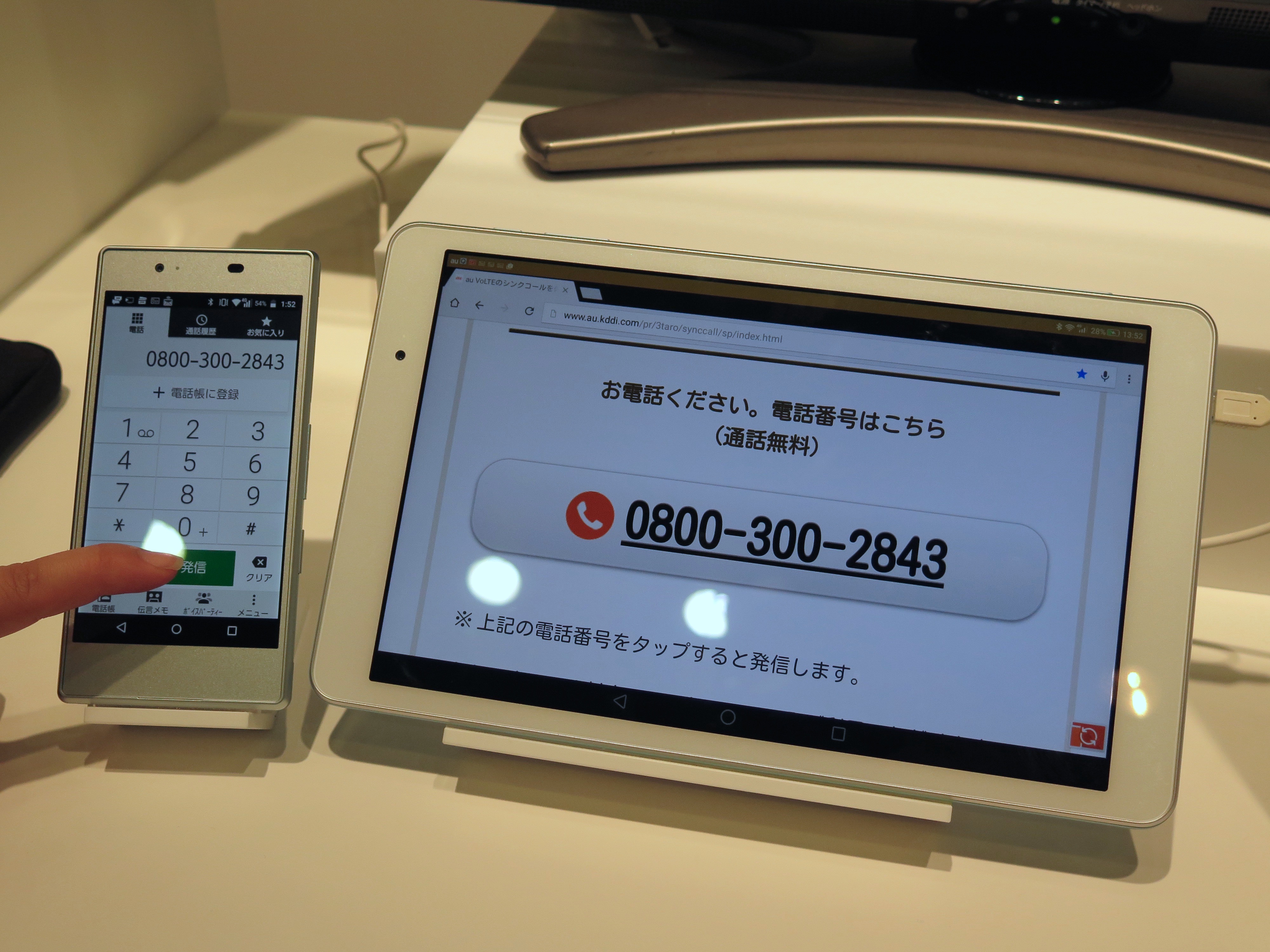 スマホや4G LTE ケータイ(ガラホ)と組み合わせて便利に使える「au シェアリンク」に対応していることもセールスポイント。このQua Tabで調べた電話番号をスマホやガラホに転送して、電話を発信できたり、スマホの画面を表示させてメールを読んだり、返信ができたり、Qua Tabで見ていたWebページの続きをスマホで見たりと、便利な使い方ができます。