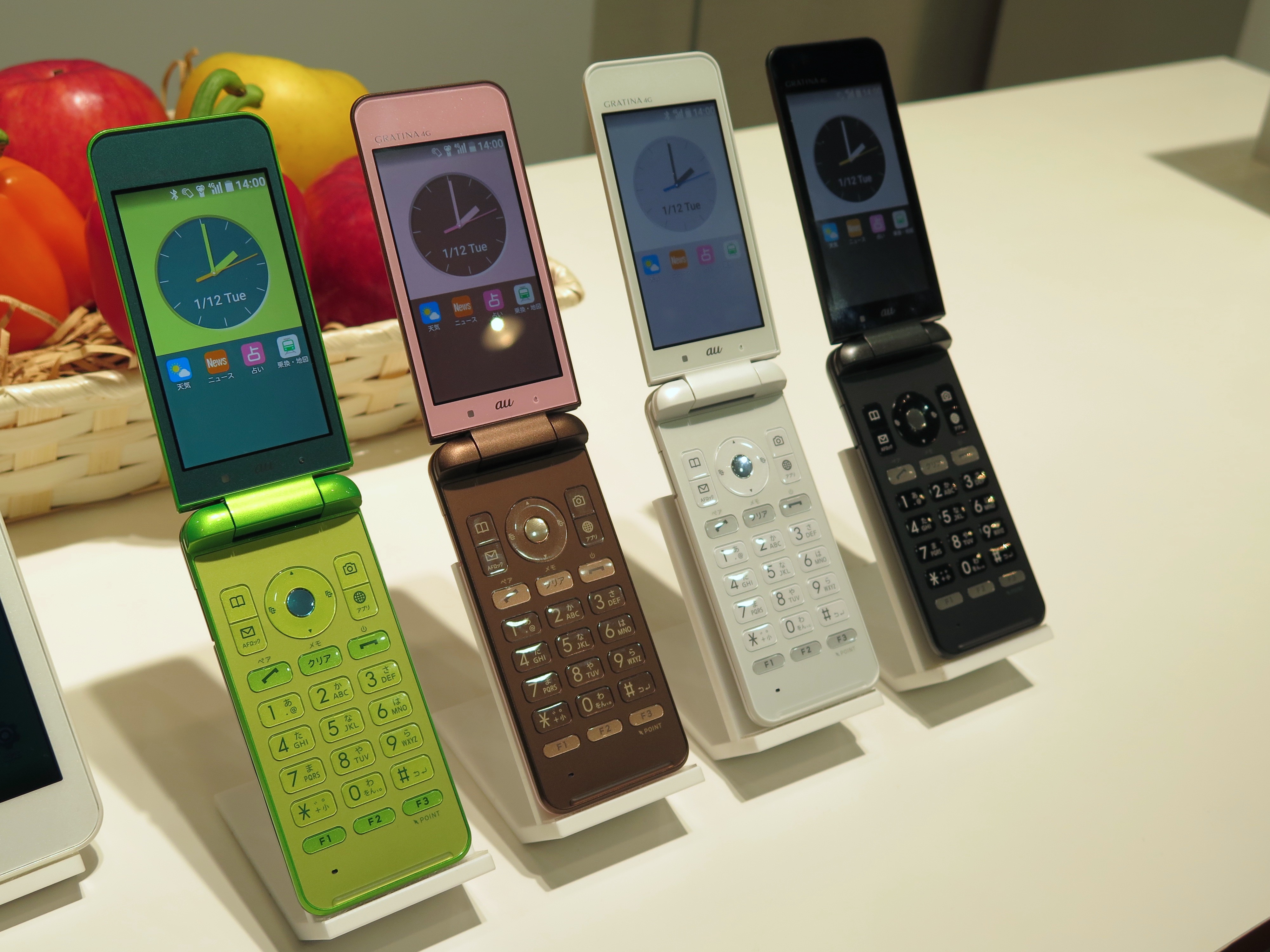 根強い人気を維持するガラケーの新モデルも発表されました。京セラ製の「GRATINA 4G」です。スペックには記されていませんが、AndroidベースのOSを採用したケータイで、いわゆる“ガラホ”です。