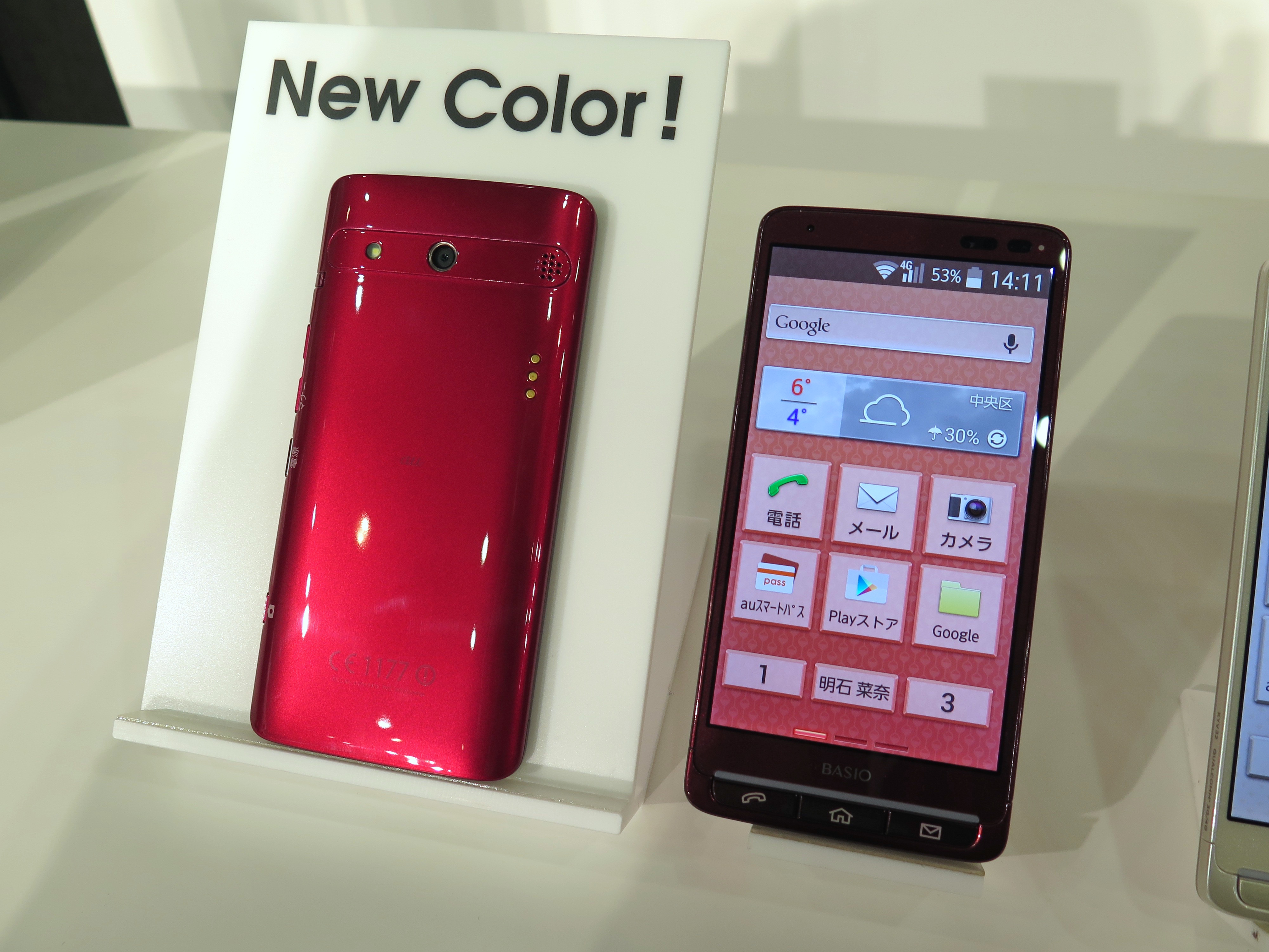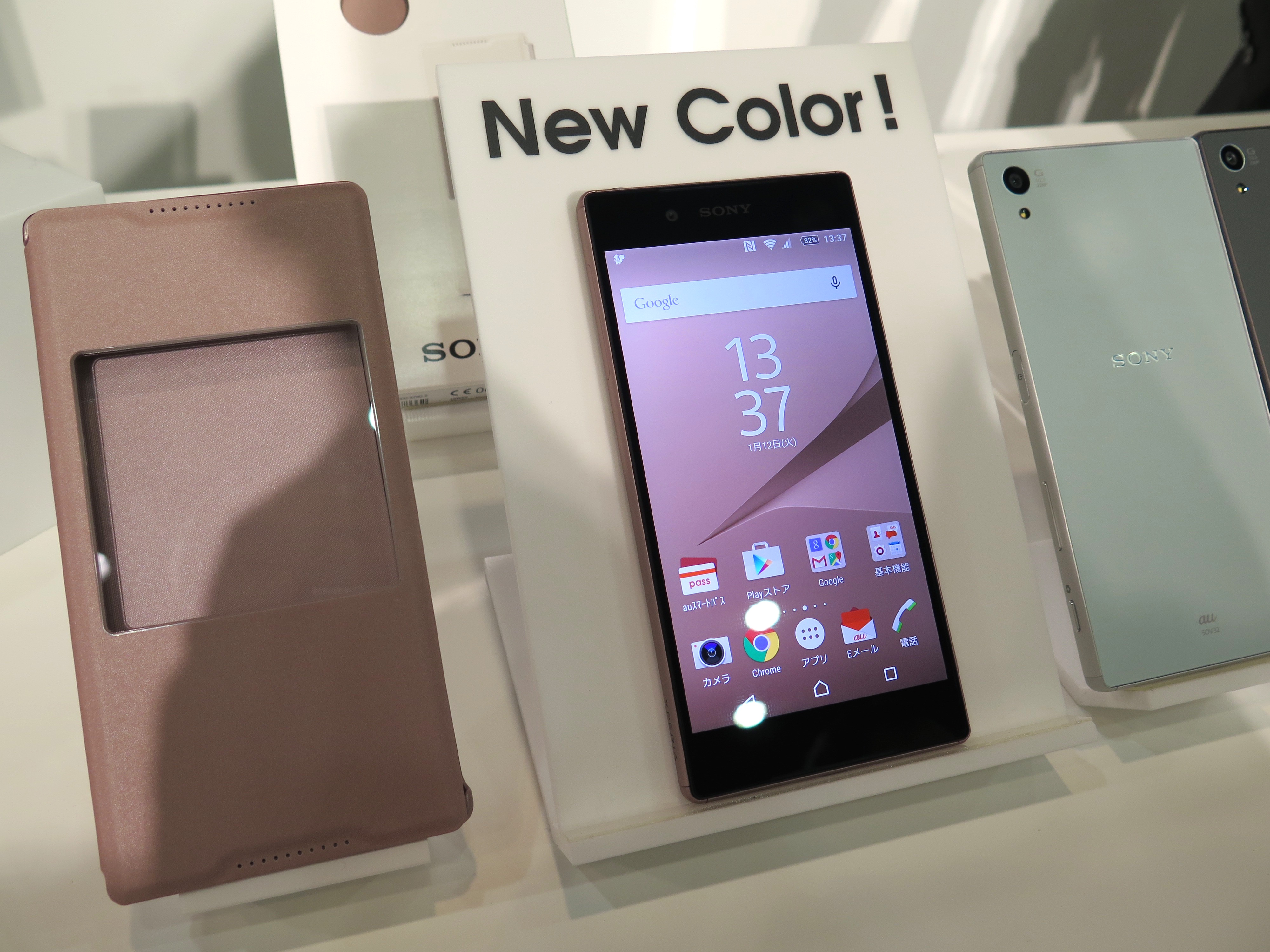 なお、発売中のXperia Z5と、BASIOの新色も発表されました。ピンクのXperia Z5は、落ち着いた上品な色なので、男性ユーザーも要注目。同色の窓付きケースも発売されます。