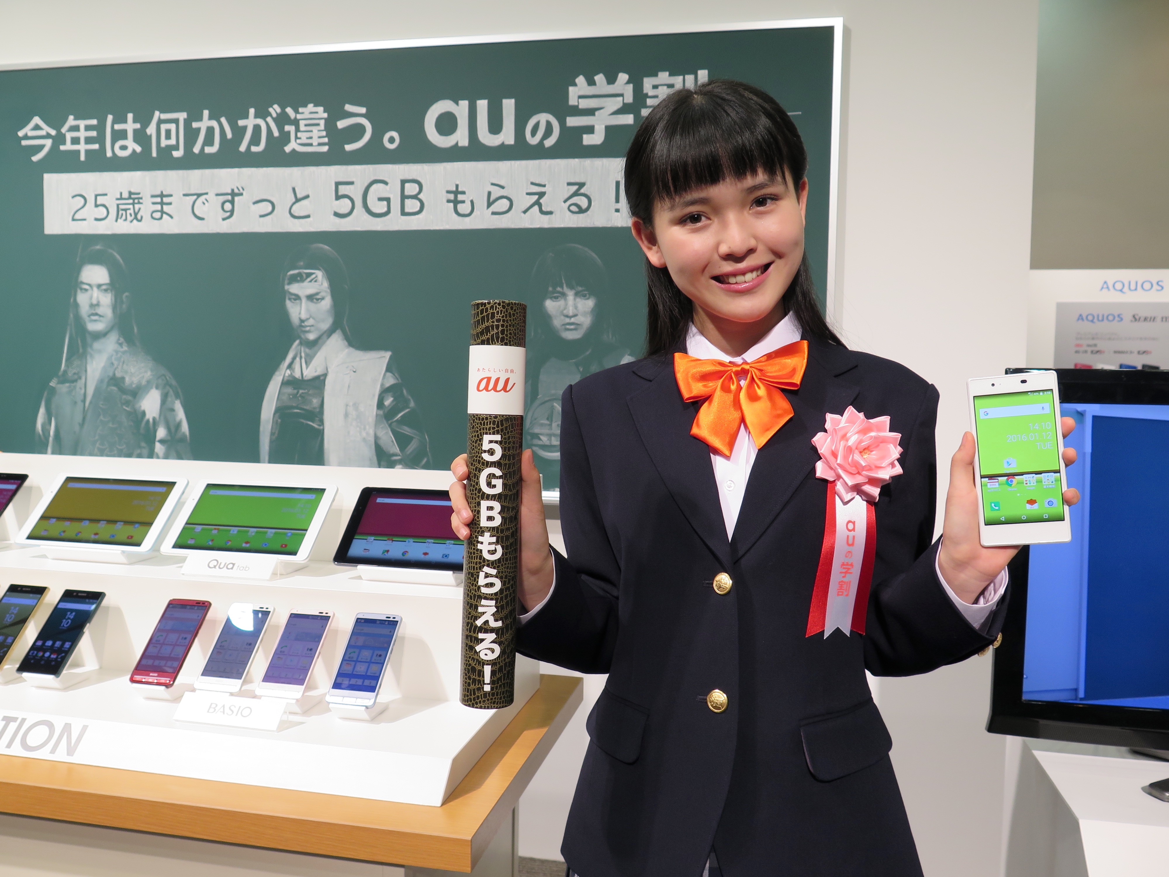 さらに、新しい「学割」も発表されました。25歳以下の学生が対象で、1月14日から5月31日までに新規・MNP・機種変更で機種を購入し、データ定額 5(月額5000円)以上に加入した場合、データ容量が毎月5GB追加されるという太っ腹なプランです。