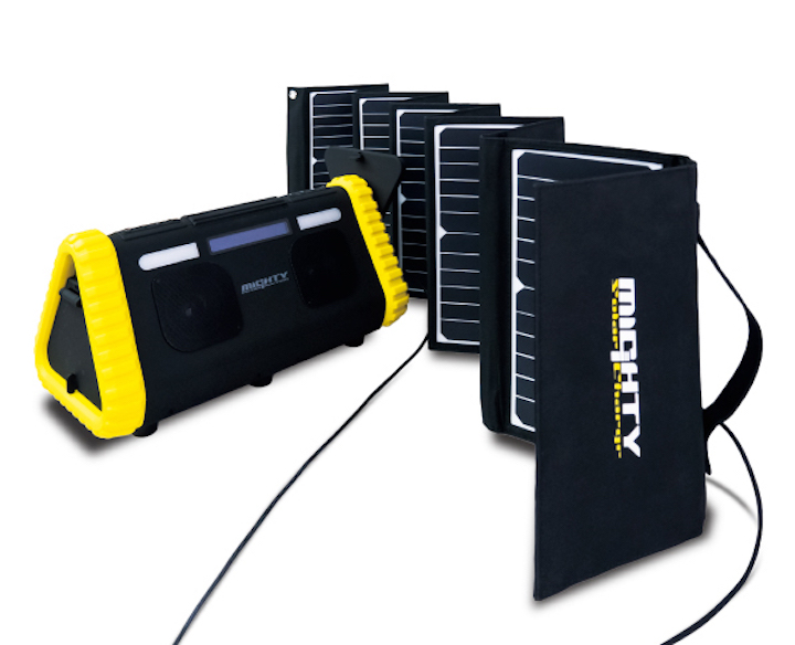 ▲「ソーラーチャージャー」(別売)に接続して給電可能
