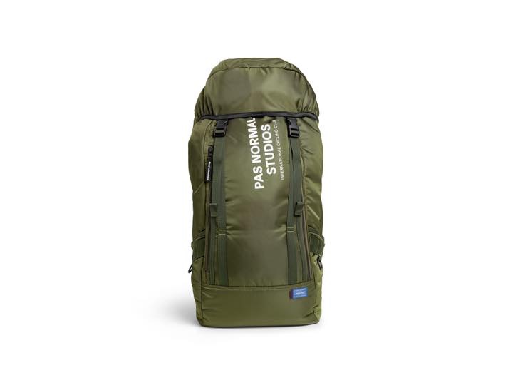 男前なミリタリーカラーに白字でデザインされた「Pas Normal Studios」のロゴが映えるサイクルバッグ、デイリーユースにも旅行用にもぴったりです。