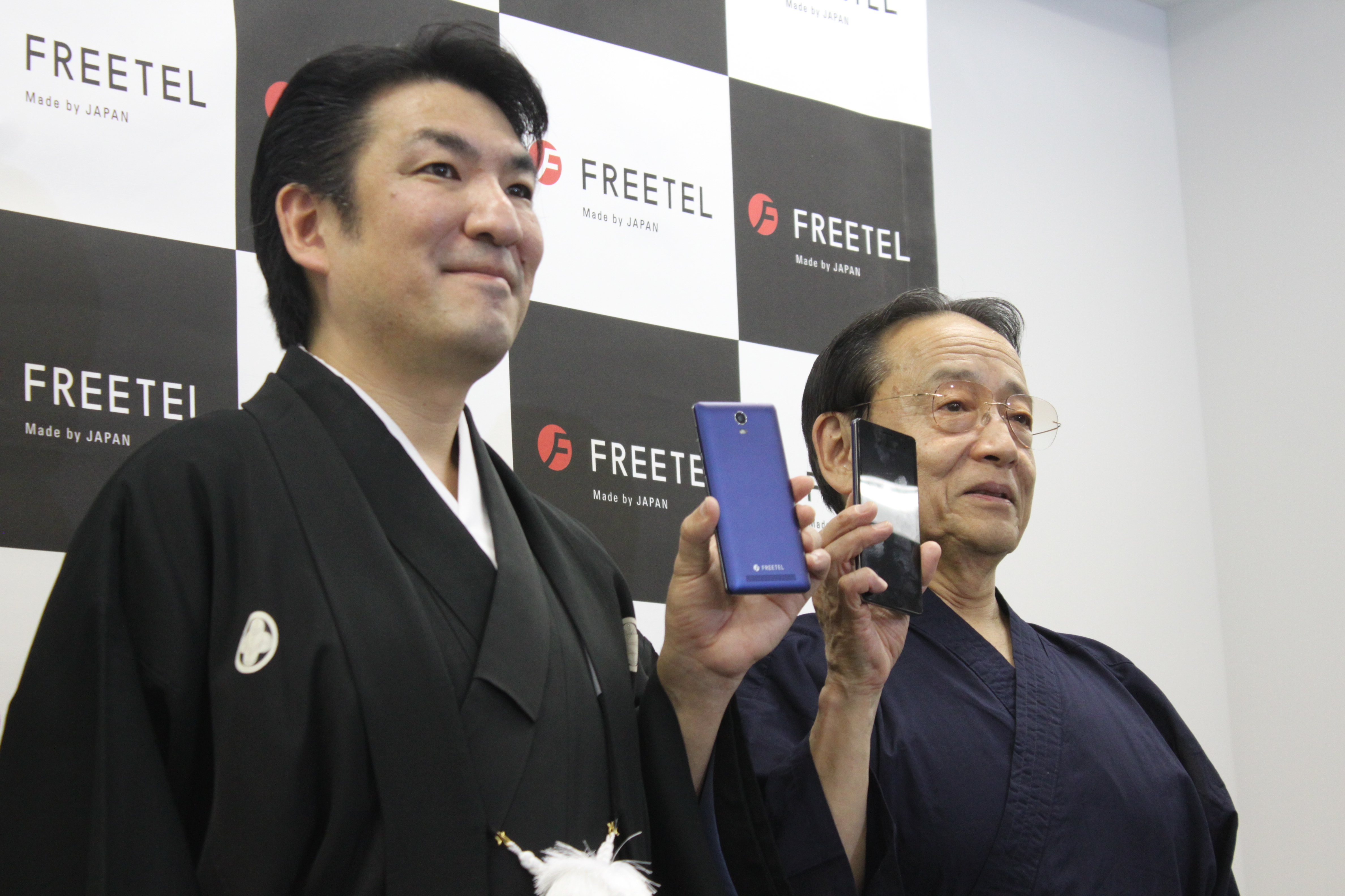 発表会では、増田社長が和服姿で今年度の意気込みを熱く語りました。FREETELコーナーの拡充や、北米、アジア中東を中心とした海外展開の拡大を進めていく予定とのこと。