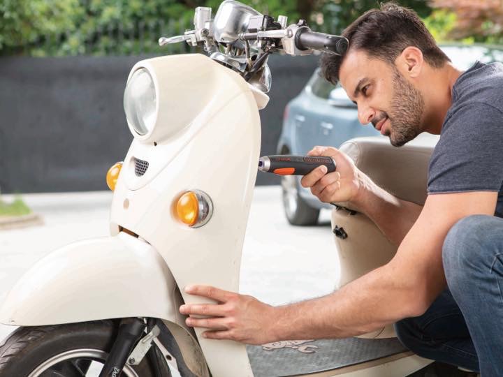 18種類の電動ドライバービットに加え、8種類の手締め用精密ビットとドライバーホルダーが付属。家具や自転車、バイクのメンテナンスといった大型のものから、時計やメガネ、パソコンなどの精密機器まで、幅広い用途で使用できます。