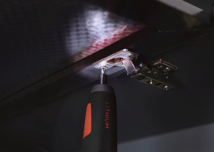 手のひらサイズのボディには、5段階のトルク(回転力) 調節、ワイヤーストリッパー、正転・逆転(締め・外し)切り替え、LEDライトといった多彩な機能を備えています。また作業時に点灯するLEDライトは充電不足時には点滅するアラート機能も兼ねています。