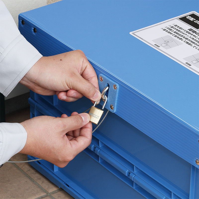 仕組みはシンプル。組み立てたボックスと玄関のドアノブをワイヤーで固定する。中に荷物を入れたら、フタをロックしてもらい、鍵をポストに入れてもらえばいい。暗証番号式の鍵を使用する場合は、暗証番号をポストに入れてもらえばOK。普通の宅配ボックスと同じように使用できる。