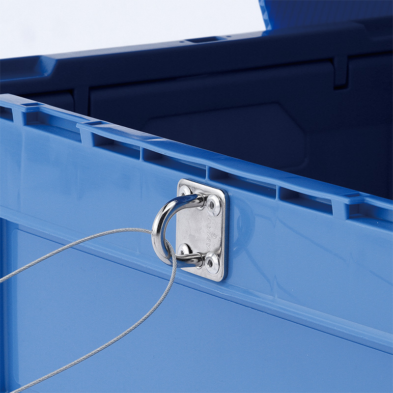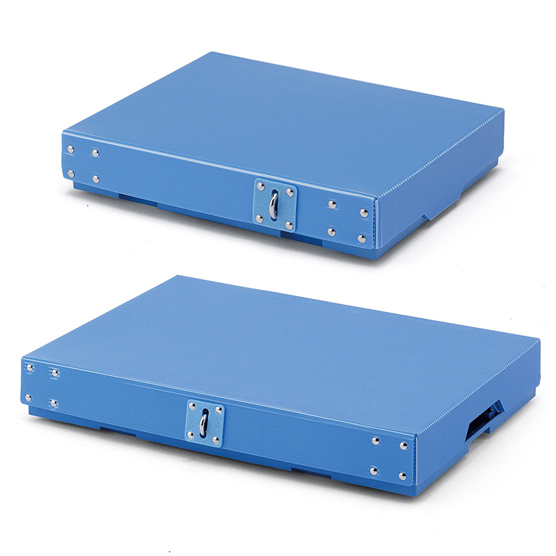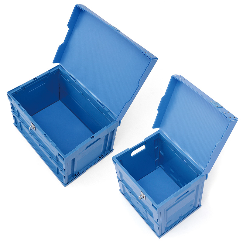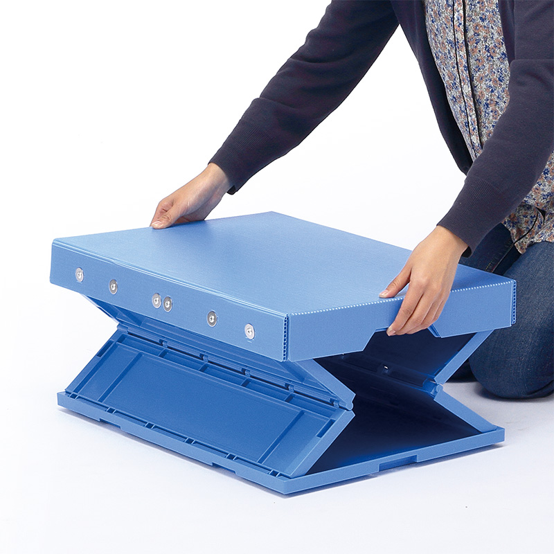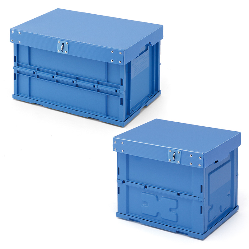 工場などで見かけることが多い、折りたたみ式のボックス(オリコンタイプ)で、使わないときは小さくたたんでおける。