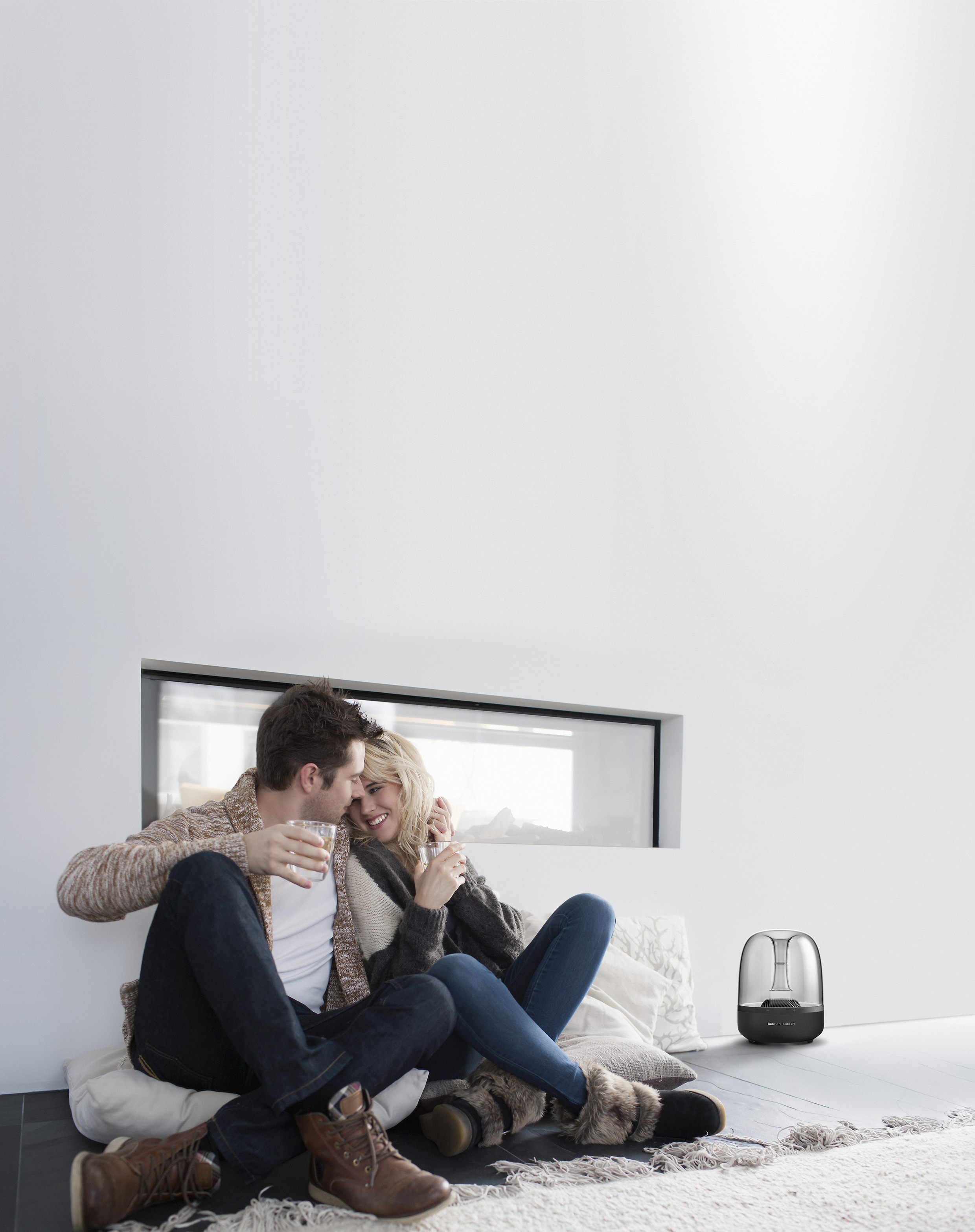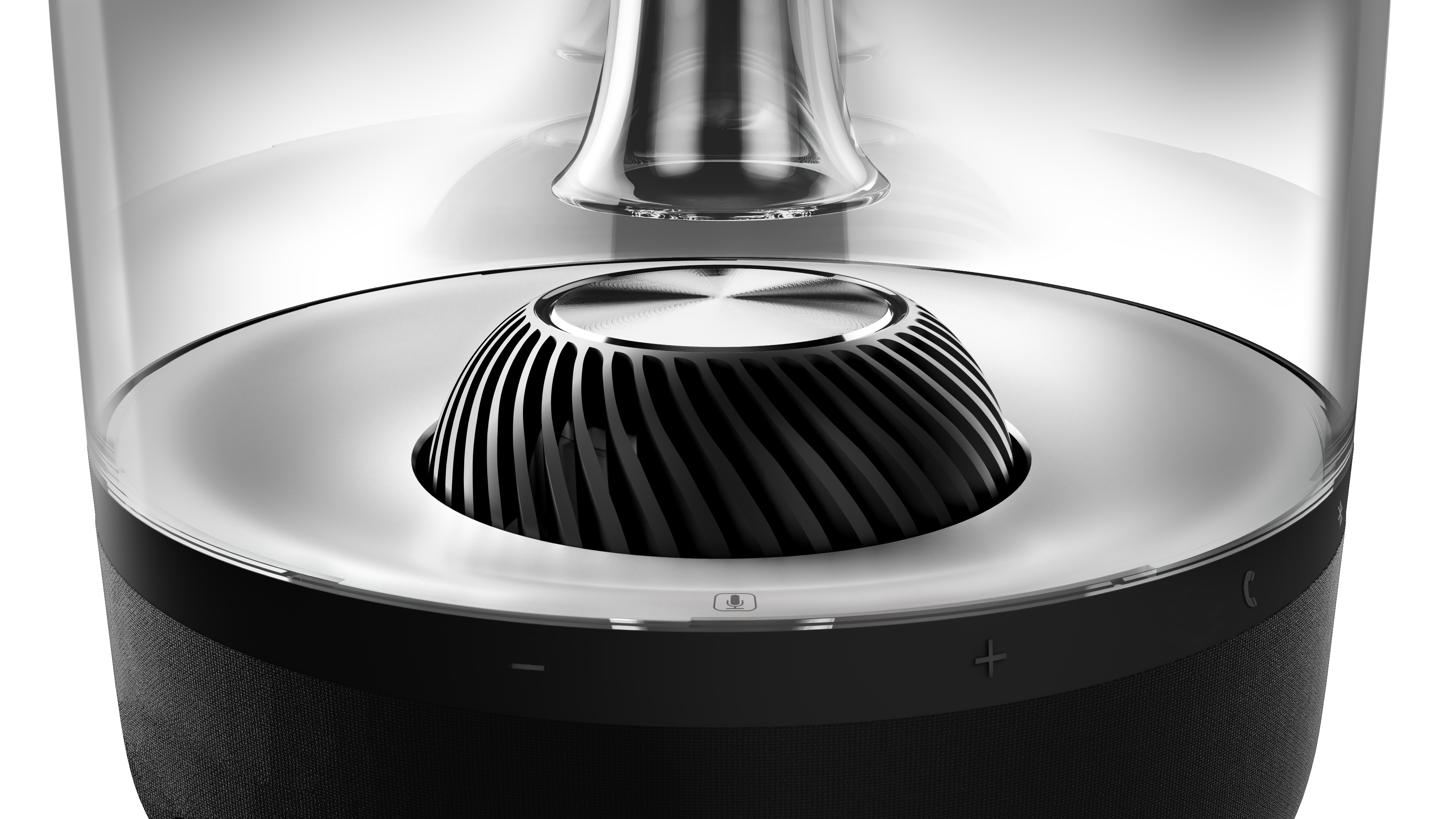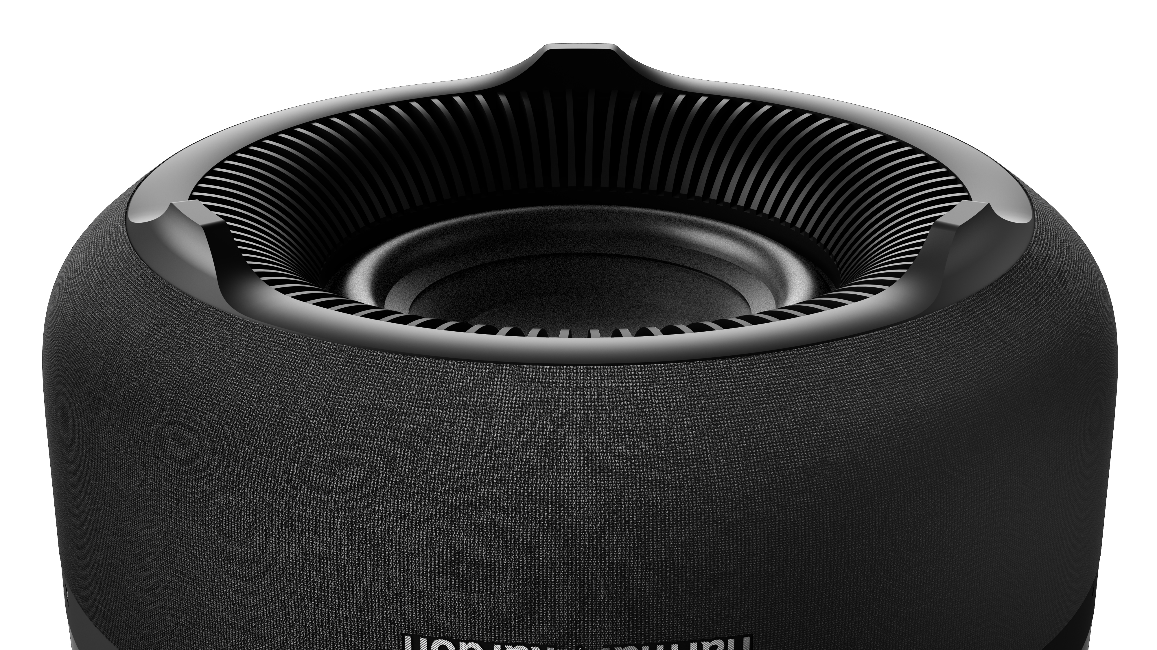 個性的なデザインに加え、サウンドもさすがのハーマン。側面に6つの40mm径ドライバーと底面に112mm径サブウーファーを搭載し、360度全方向にクリアな高音と豊かで迫力のある低音を広げることを可能にした。