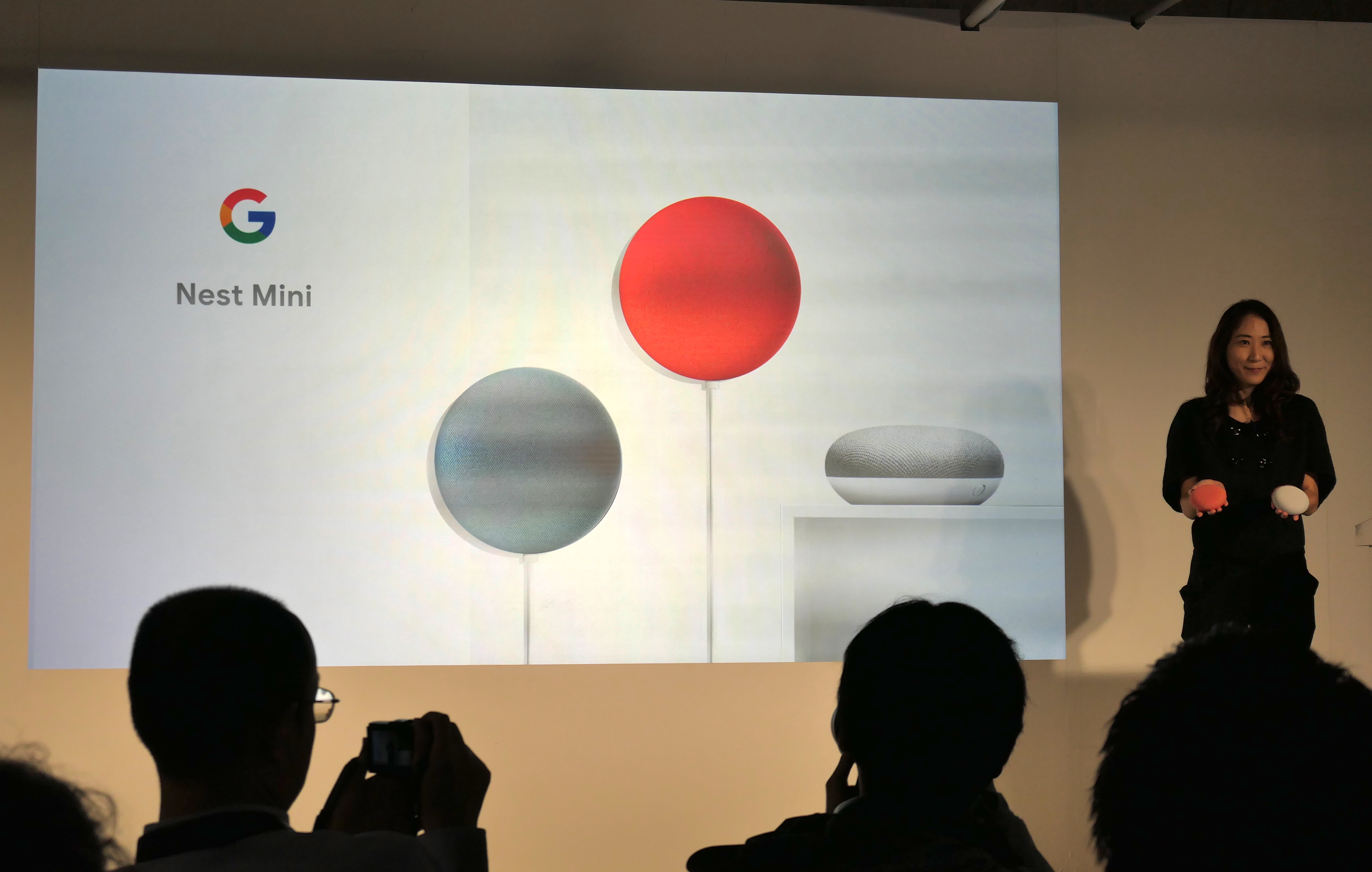 ▲Google Nest Miniは、Chalk、Charcoal、Coral、Sky(新色)の4色展開。希望小売価格は6050円(税込)