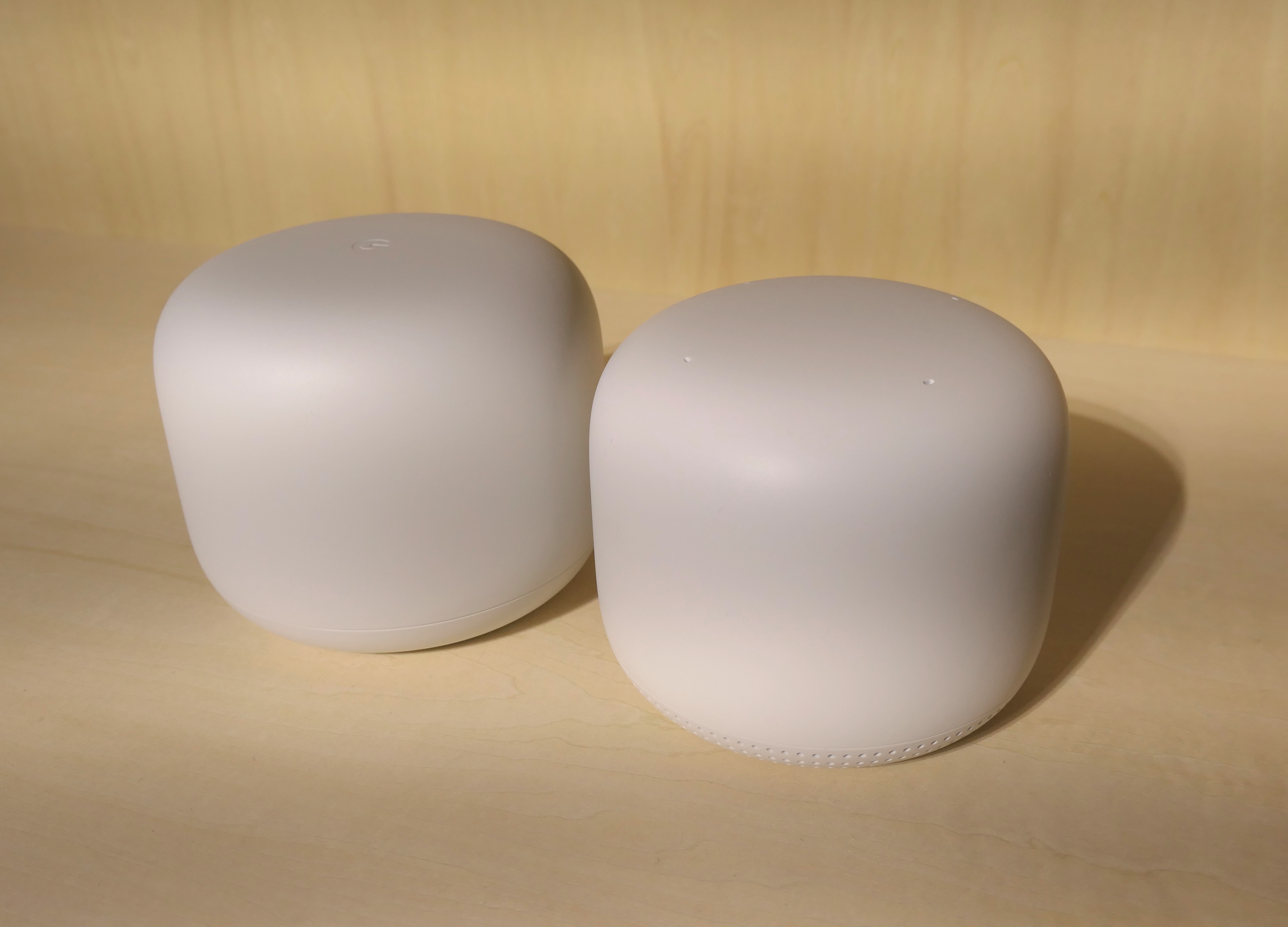 ▲左がルーターで、スピーカーが付いている右が拡張ポイント。組みわせてメッシュWi-Fiルーターとして使える