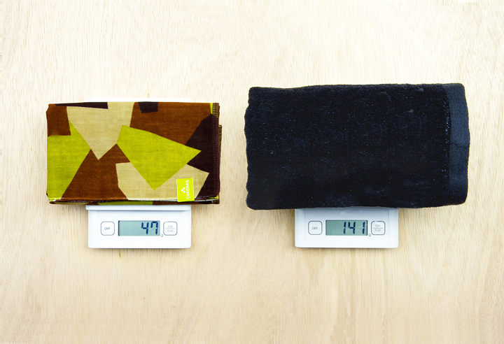 110cmという長さながら、スポーツタオルの3分の1という軽さ。かさばらないので持ち歩きや収納に困りません。竹の繊維と綿で織り上げているので吸水性と速乾性が高いのが特徴です。