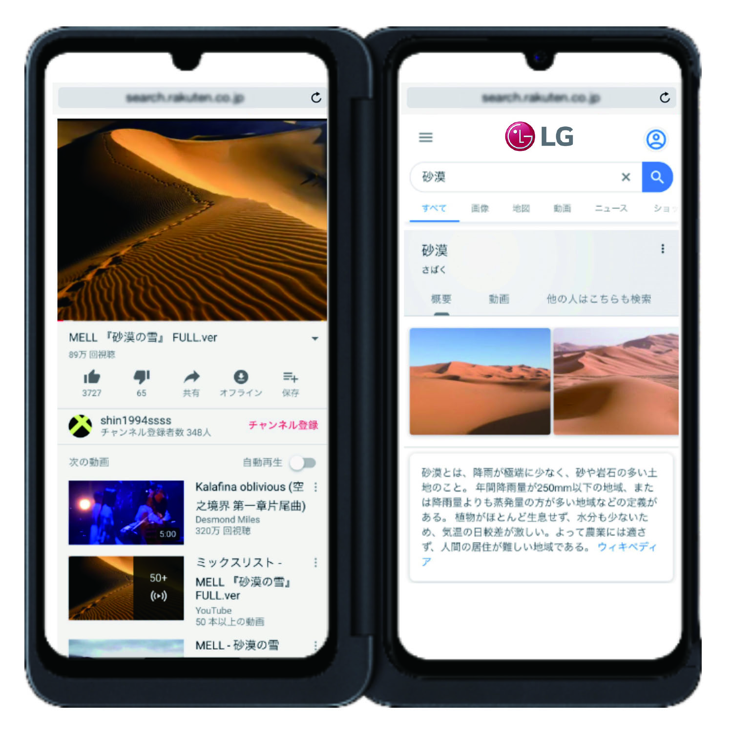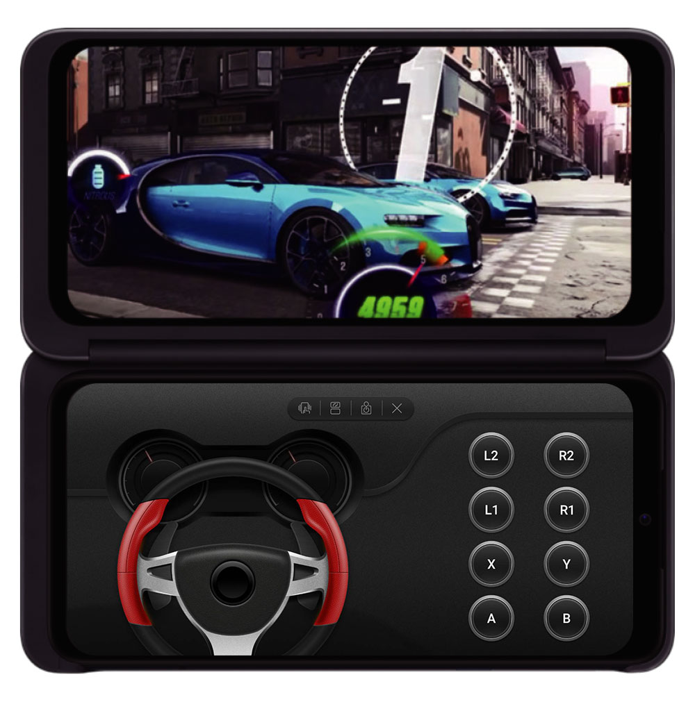 ▲LGデュアルスクリーンにも約6.4インチの有機ELディスプレイを搭載。2画面を使って、効率的にマルチタスク操作ができる