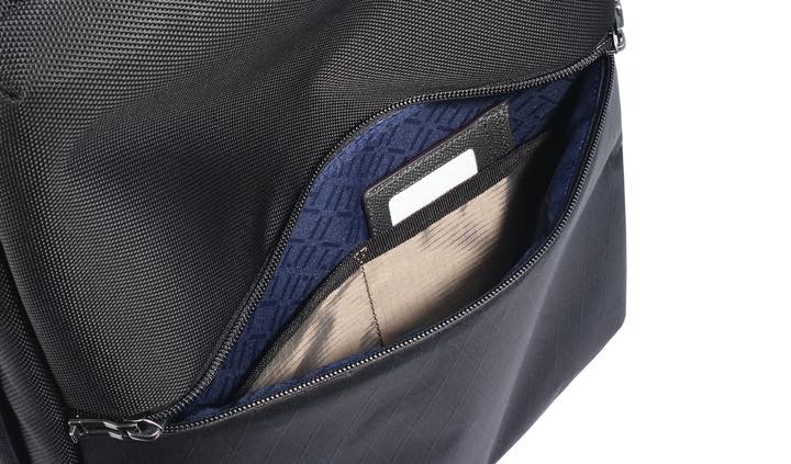 これら3つの防犯機能は貴重品を収納するフロントポケットに集中させ、荷物を出し入れする際の煩わしさを軽減。デザインの邪魔にならないよう、さりげなく配置されており、旅行時はもちろんデイリーユースにも最適です。