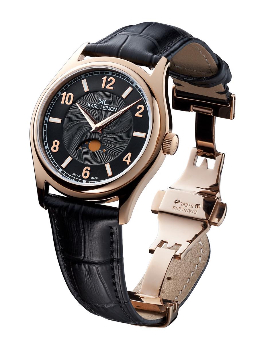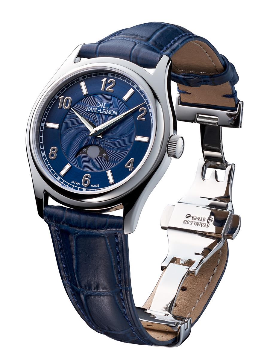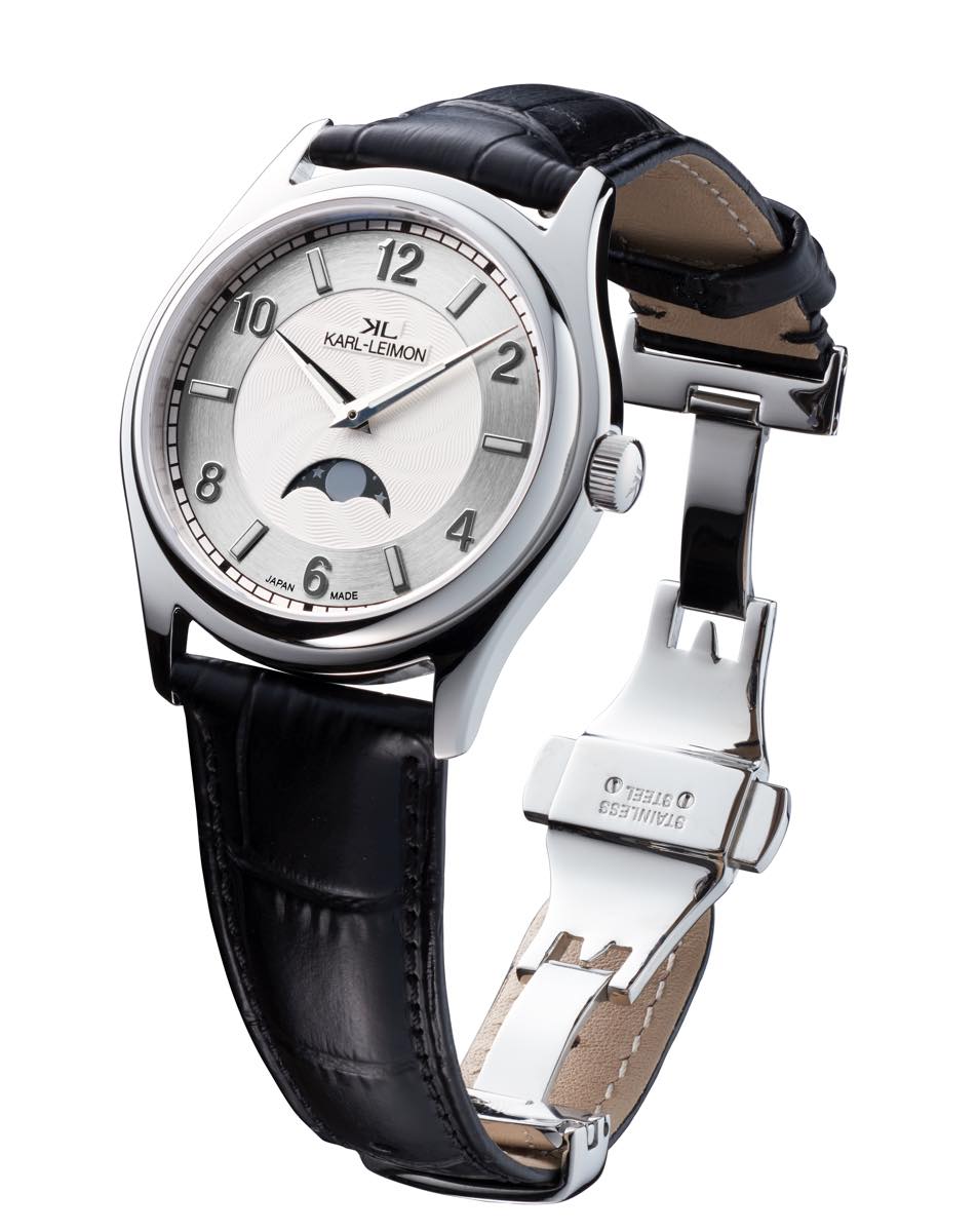 ケースとストラップのカラーバリエーションも豊富で、またファッションに合わせて揃えておけるリーズナブルな価格もうれしい。ムーンフェイズだけをシンプルに載せてクラシカルな世界観を体現する、KARL-LEIMONの新しい挑戦です。