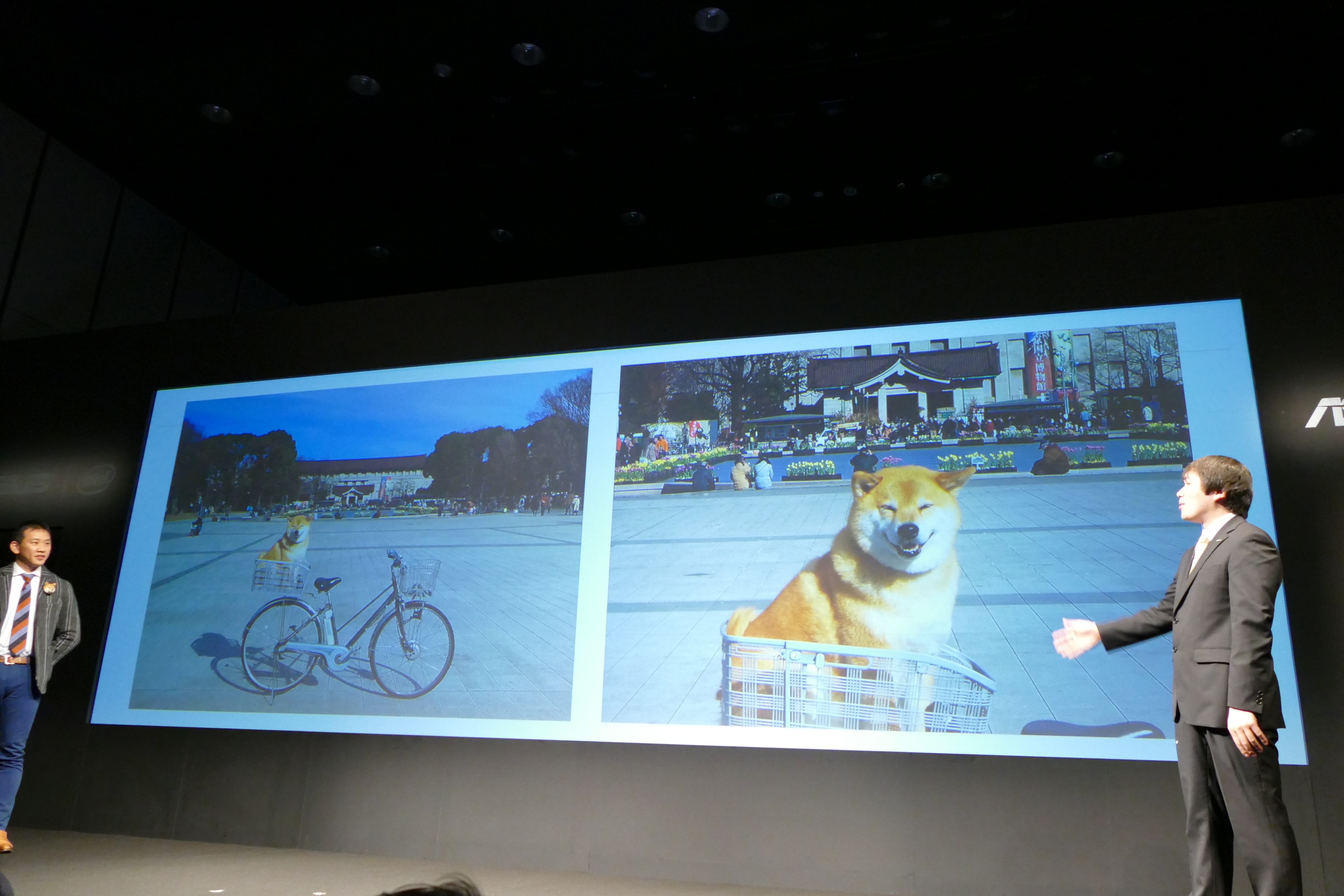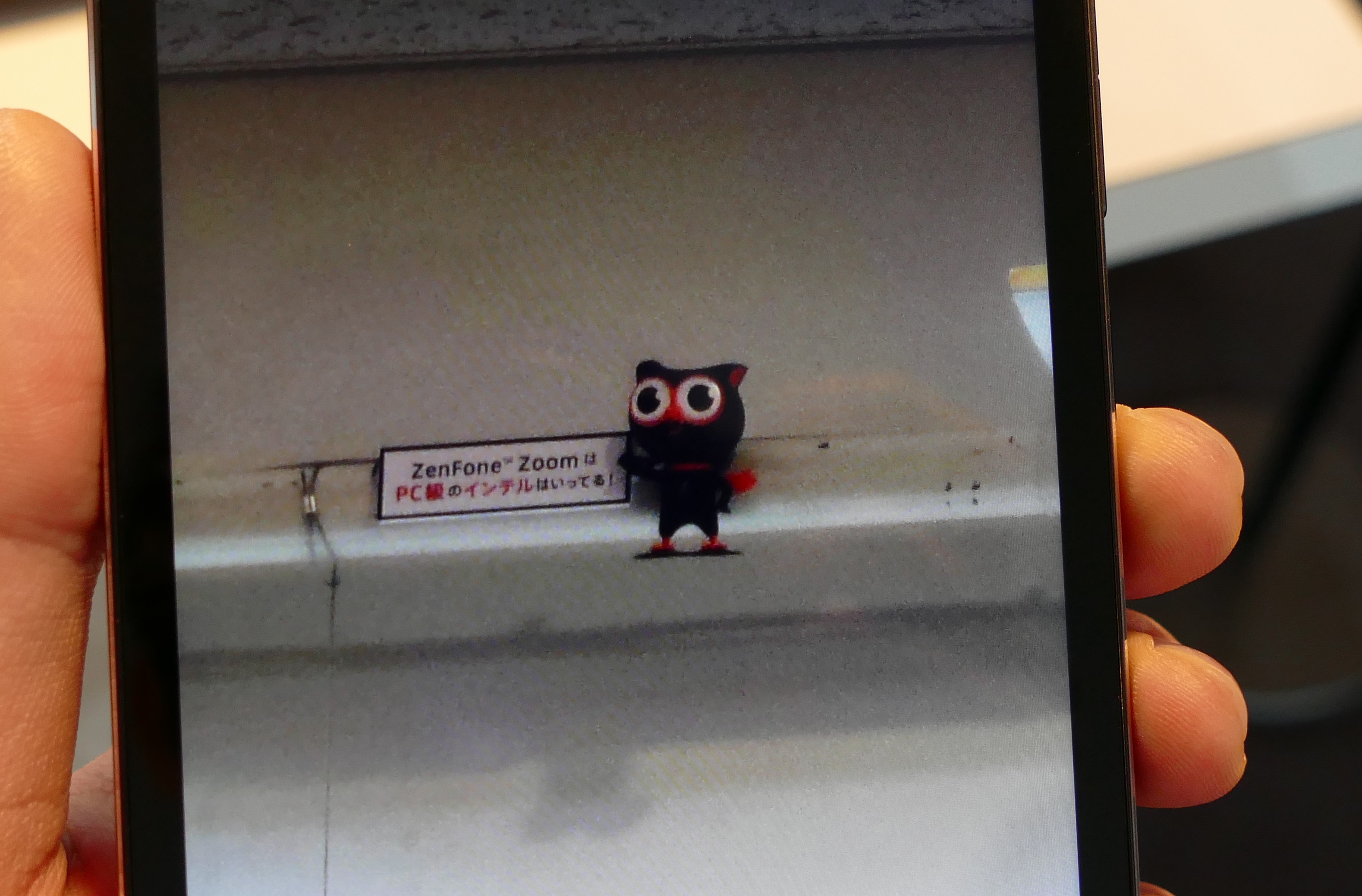 発表会場の壁にはASUSのマスコットキャラ「禅太郎」のミニ人形が設置されており、ズーム機能を試せるようになっていました。