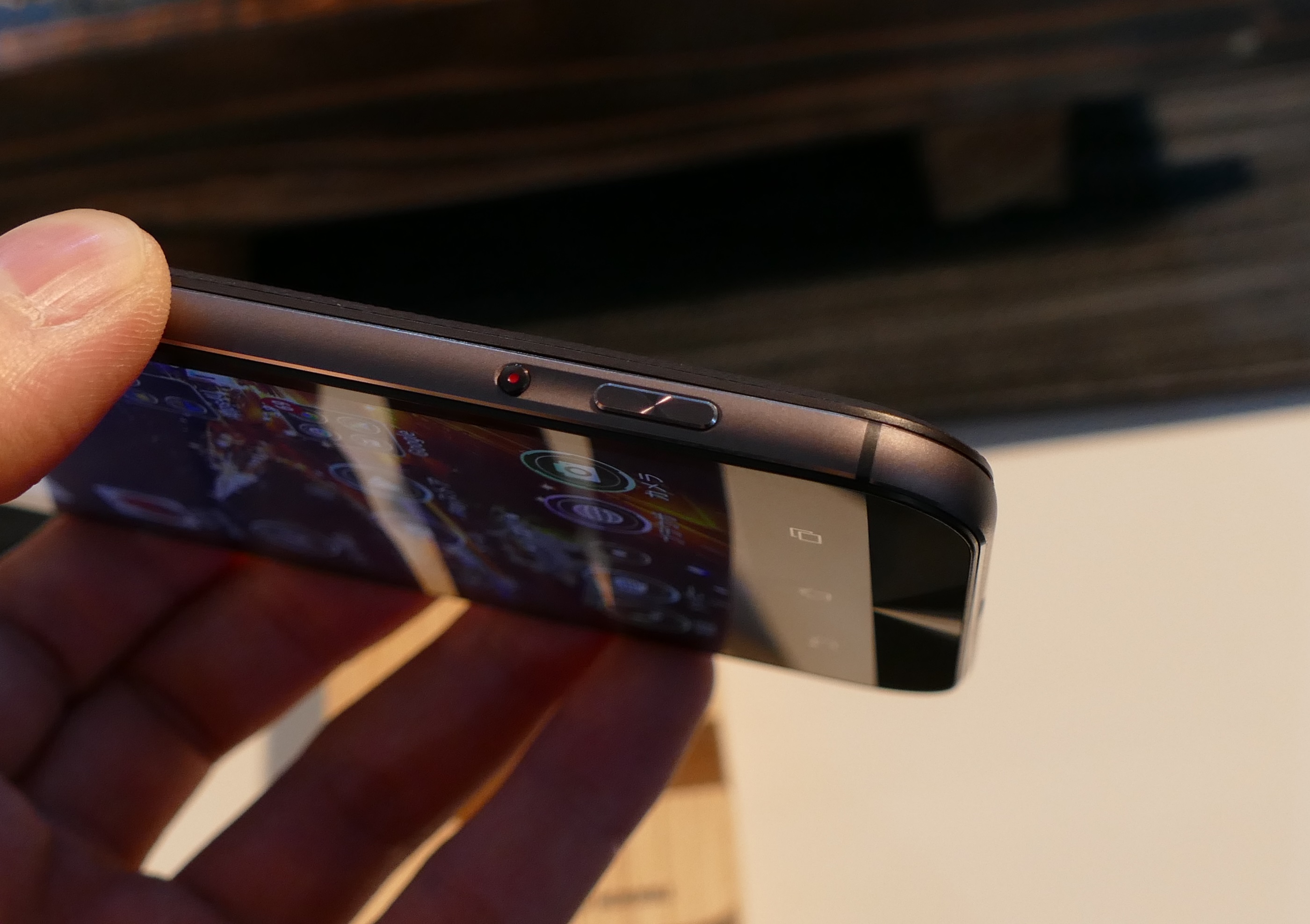 端末の側面には、カメラ重視のスマホらしくシャッターボタンが設置されています。スマホを起動した状態で長押しをすると、カメラアプリが起動するので急なシャッターチャンスにも慌てずに対応できます。また、半押しでピントを合わせられるので、画面をタッチすることによる手ブレも防げます。なお、シャッターボタンの横には、動画撮影用に録画開始ボタンも付いています。
