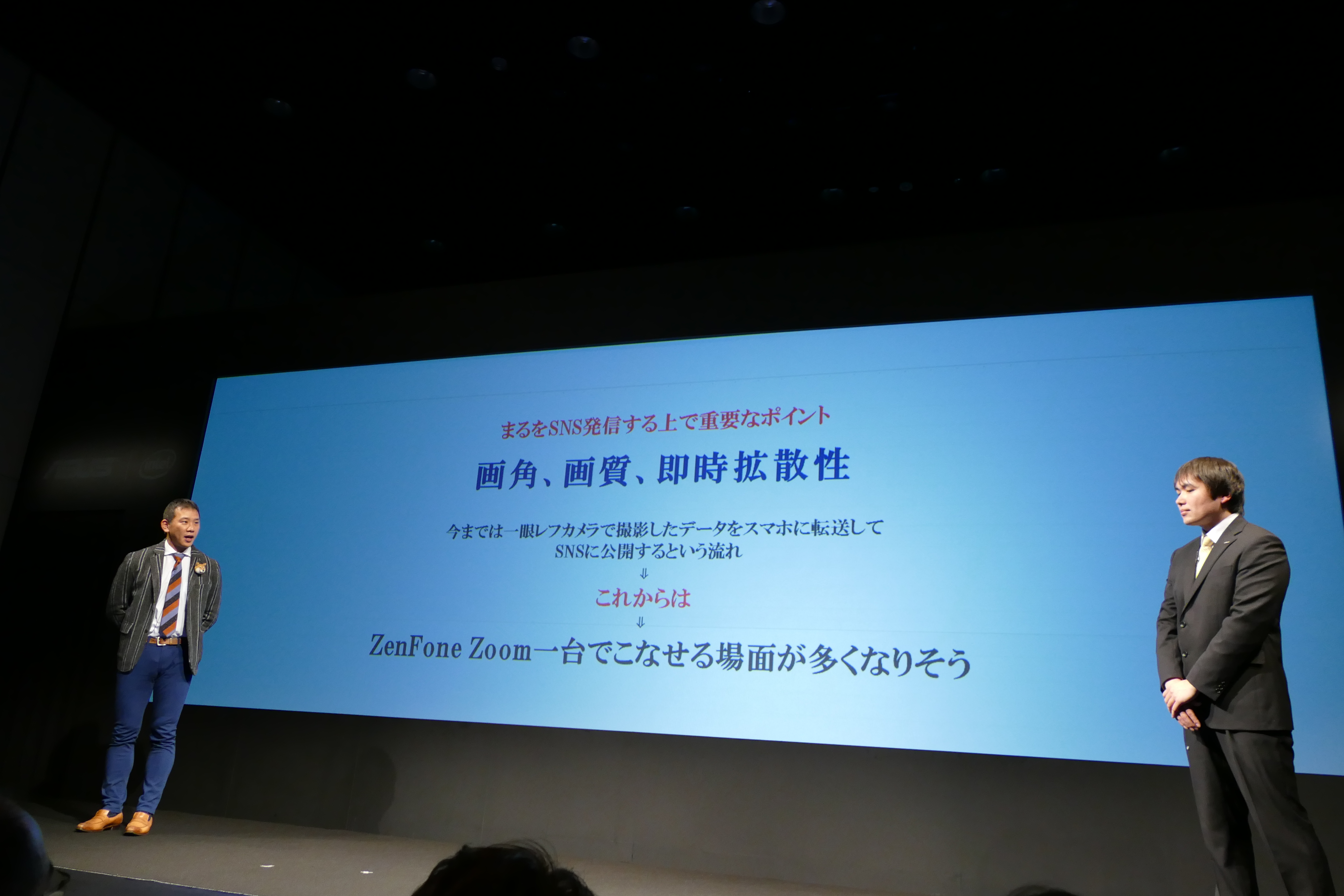 また「一般的に、コンデジで撮影した画像はパソコンがないとSNSにアップしづらいが、ZenFone Zoomで撮影すればリアルタイムに画像をアップできる」と本機の魅力についても言及しました。