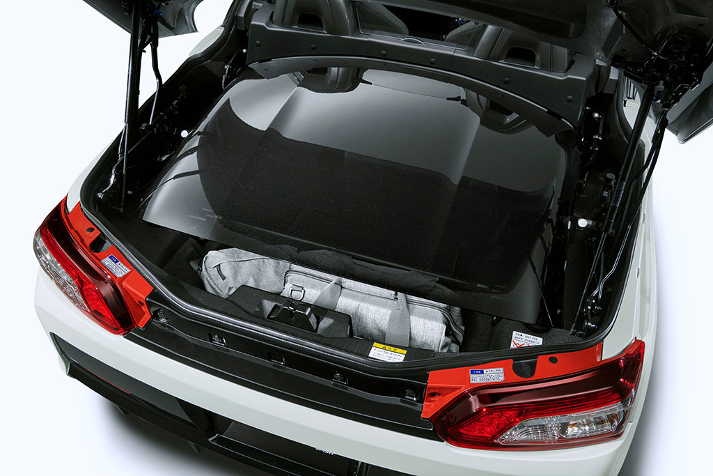 エンジンはベースモデルと共通ですが、64馬力を発生する3気筒DOHCターボ“KF”型ユニットは、吸気バルブの開閉タイミングを変える“DVVT”を備えていて、鋭い加速には定評があります。また、CVT仕様に採用されるのは、7速の“スーパーアクティブシフト付CVT”で、シームレスな加速を楽しめるDモードと、スポーツカーらしい有段変速を楽しめるSモードとを切り替えられ、マニュアル変速も選べます。