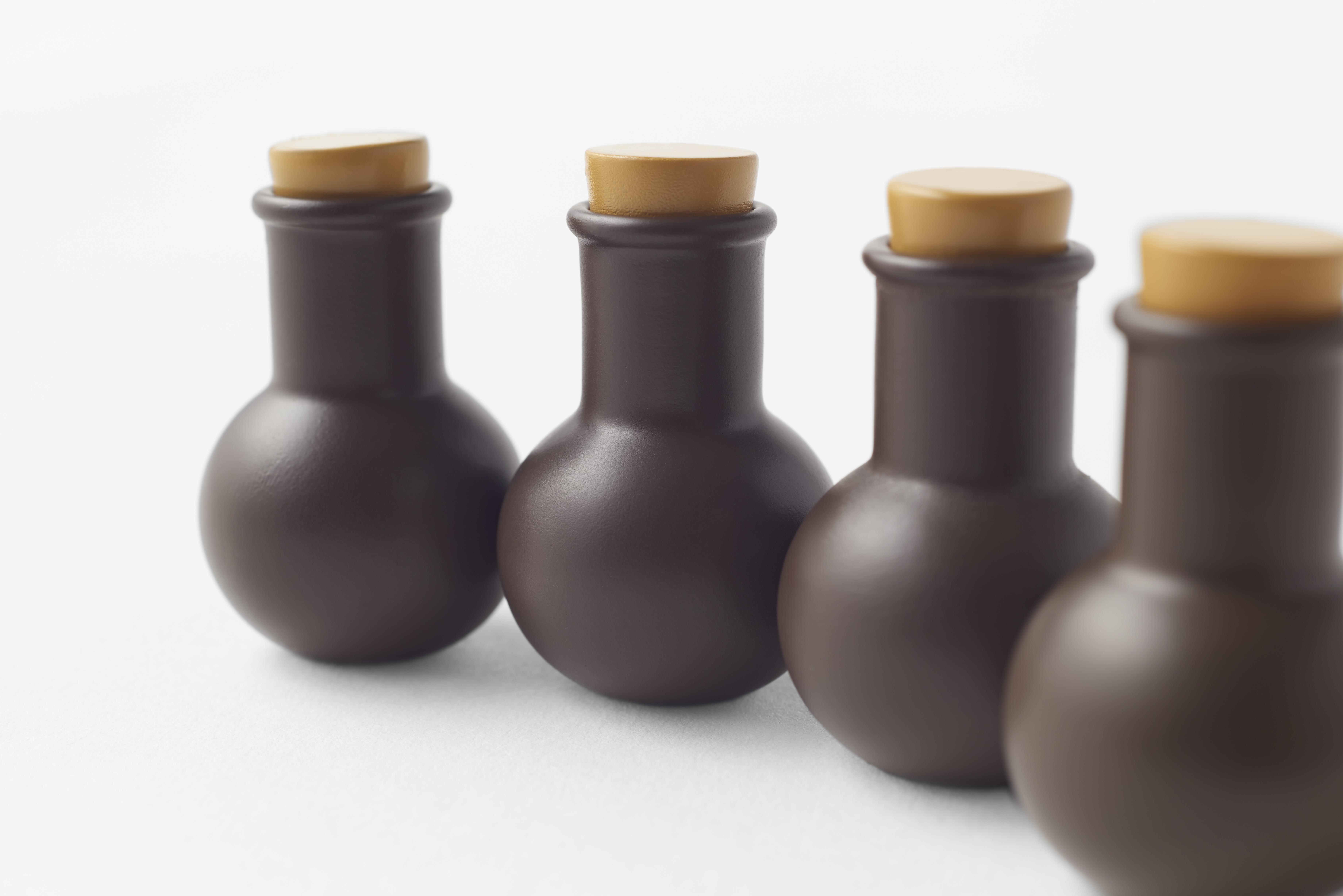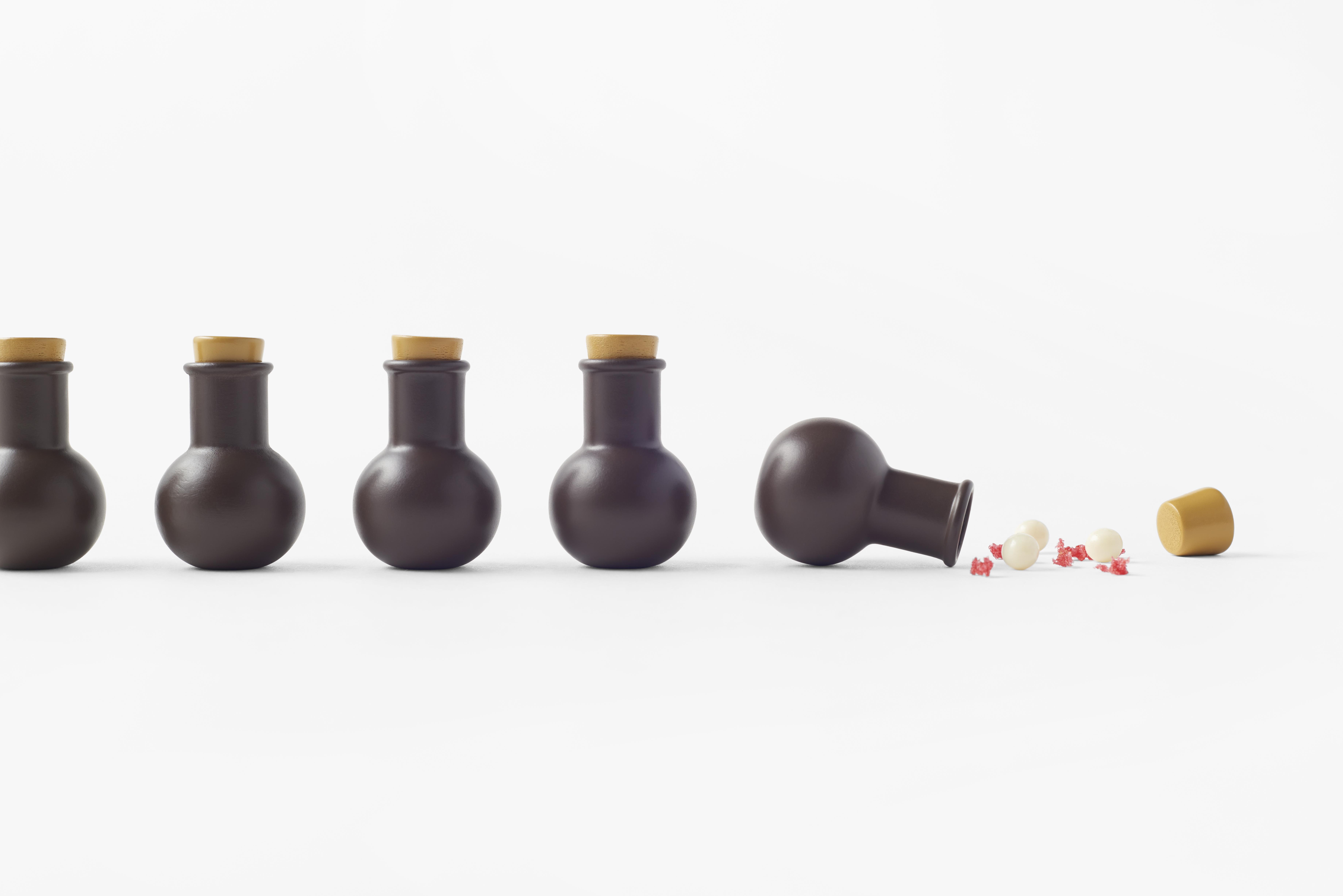 まず「chocolamixture (ショコラミクスチャ)」(5400円)は、一見、理科の授業で使うようなフラスコや試験管の詰まったセット。このフラスコは実はチョコレート。