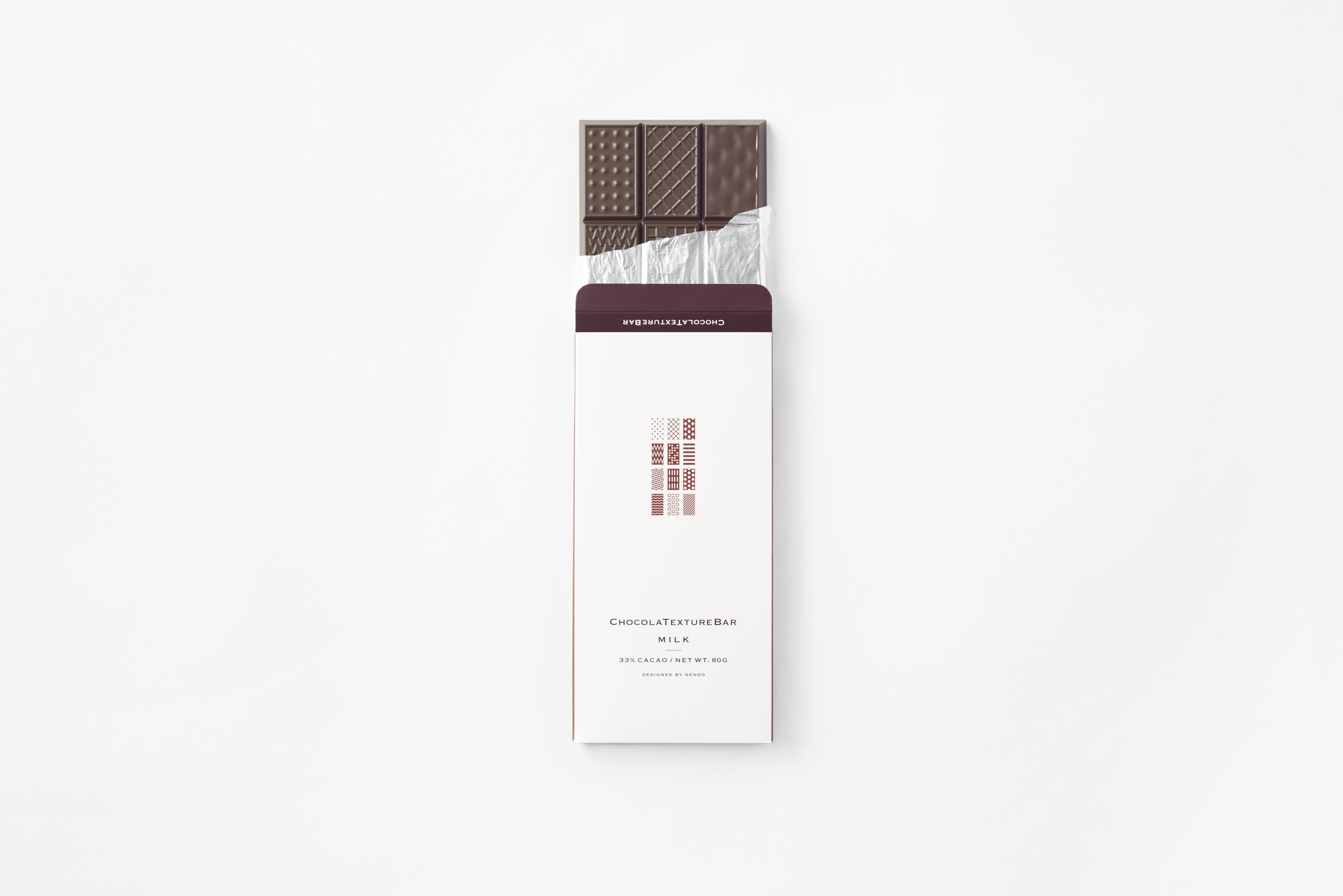 同コンセプトの「ショコラテクスチャバー」は、板チョコの表面に様々な模様を施すことにより、同一であるはずのチョコの味の変化を舌の上で「味(み)る」ことができるのだそう。フレーバーはミルク、いちご、ホワイト、ビター、抹茶の5種類。