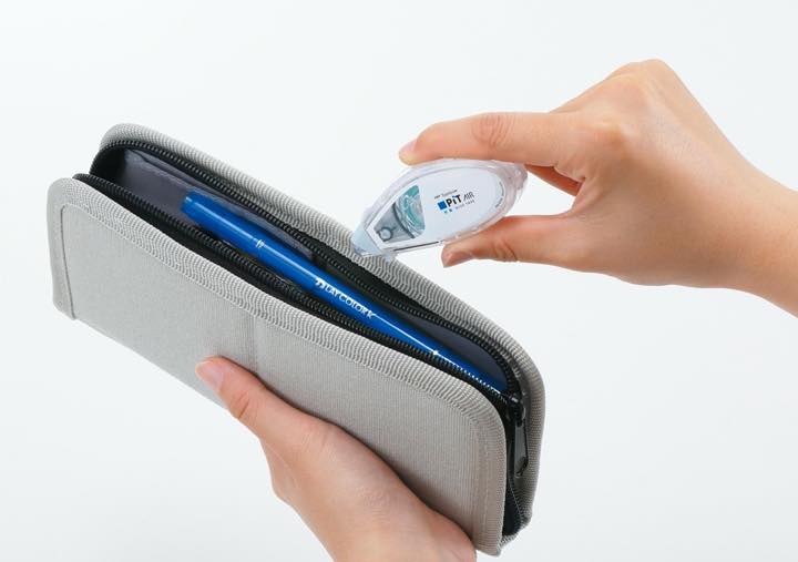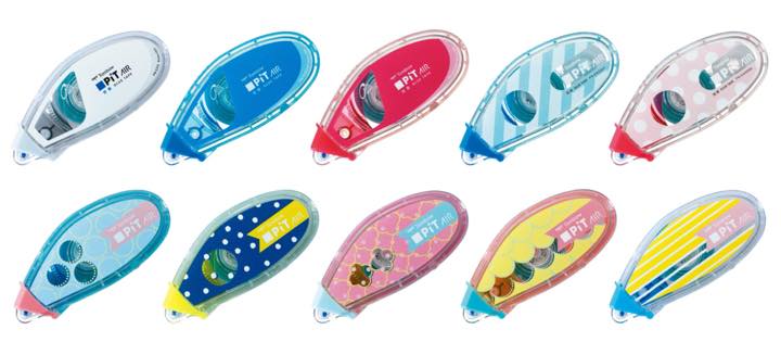 トンボ鉛筆から11月1日に登場する「ピットエアーミニ」(220円/税別)は、テープ走行が驚くほど軽く、しかも粘着力が強いテープのりです。テープ幅はわずか6mm、10m巻きの使いきりタイプで、外形はW32×D20×W73mm。ペンケースに携帯できる手のひらサイズで、学生から社会人まで、幅広い利用者ために全10色のカラーバリエーションを取りそろえて登場します。