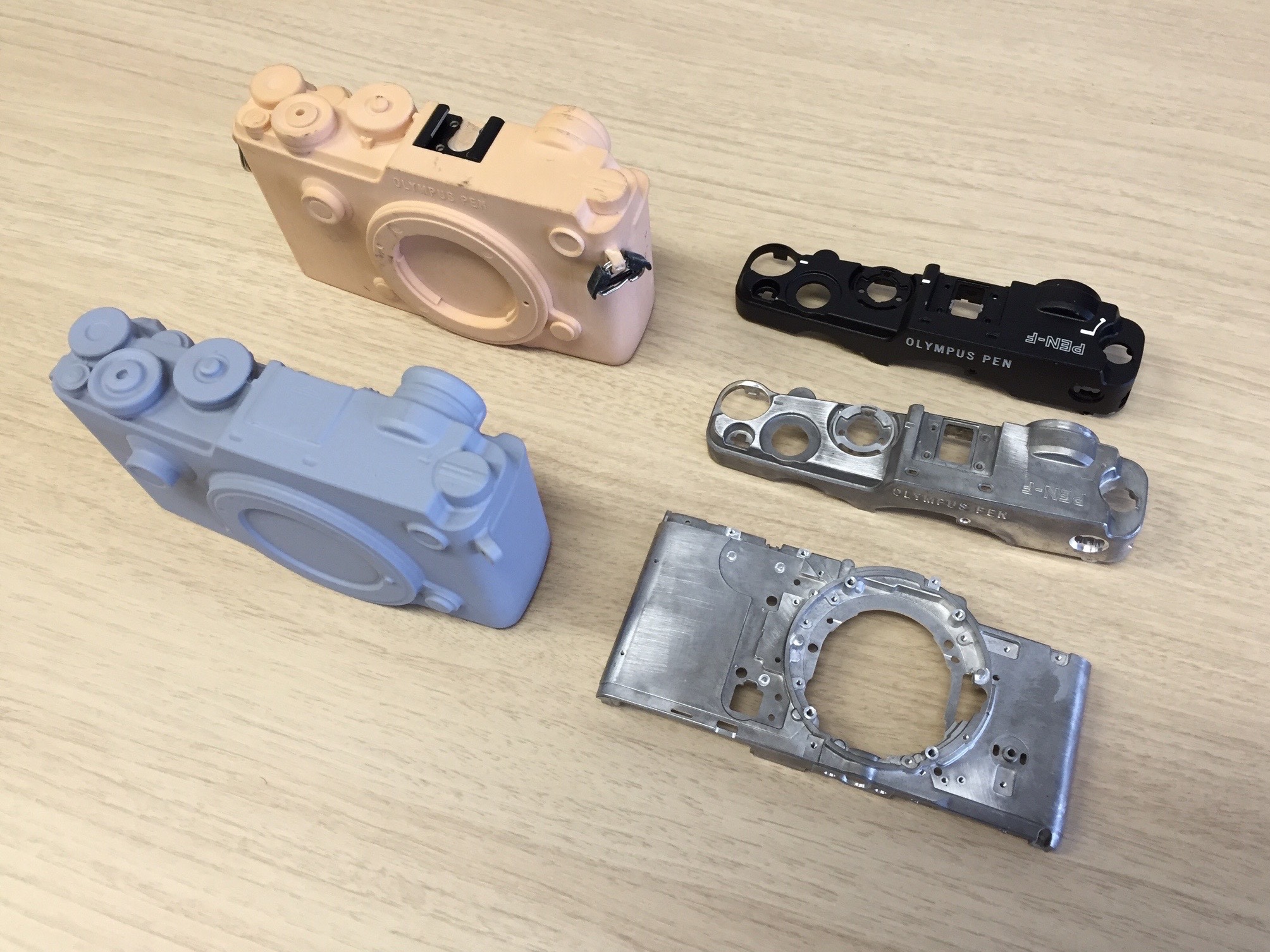 ボディのモックの一部。ボタン、ダイヤルの形状から、素材まで数多くのサンプルが試されたという