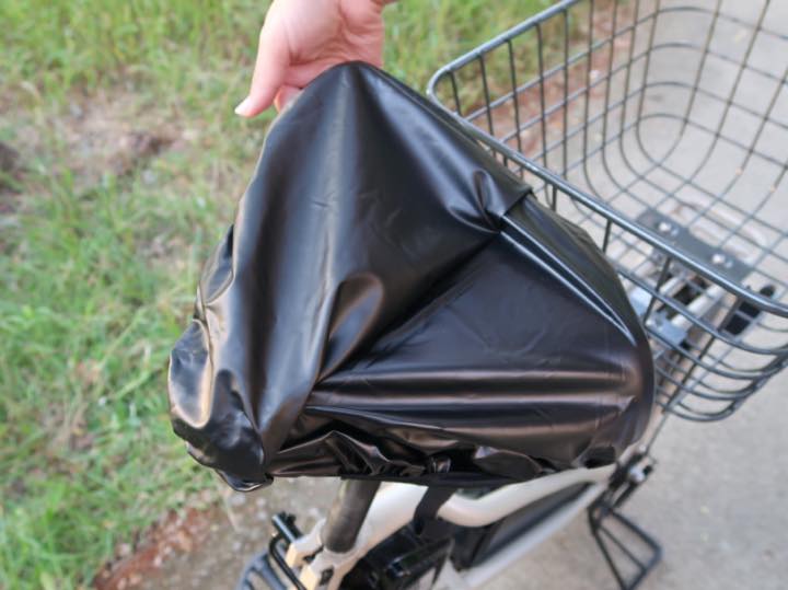 “雨でも自転車のサドルもお尻も濡れません!”がウリのサドルカバー、一体どうやって使うのか気になります。