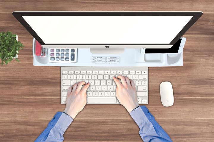少しだけ浮いた空き間は、机の周りの物もキレイに整理することにも、ひと役買ってくれそう。また、画面が目線と並行になることで、正しい姿勢を保ちながらデスクワークを行えるというメリットも。