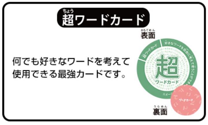 このゲームをさらに盛り上げるポイントは2種類のスペシャルカード。手札に持っているプレイヤーだけが発動できる「世紀の大誤審カード」や「超ワードカード」で、まさかの大逆転もあり!?