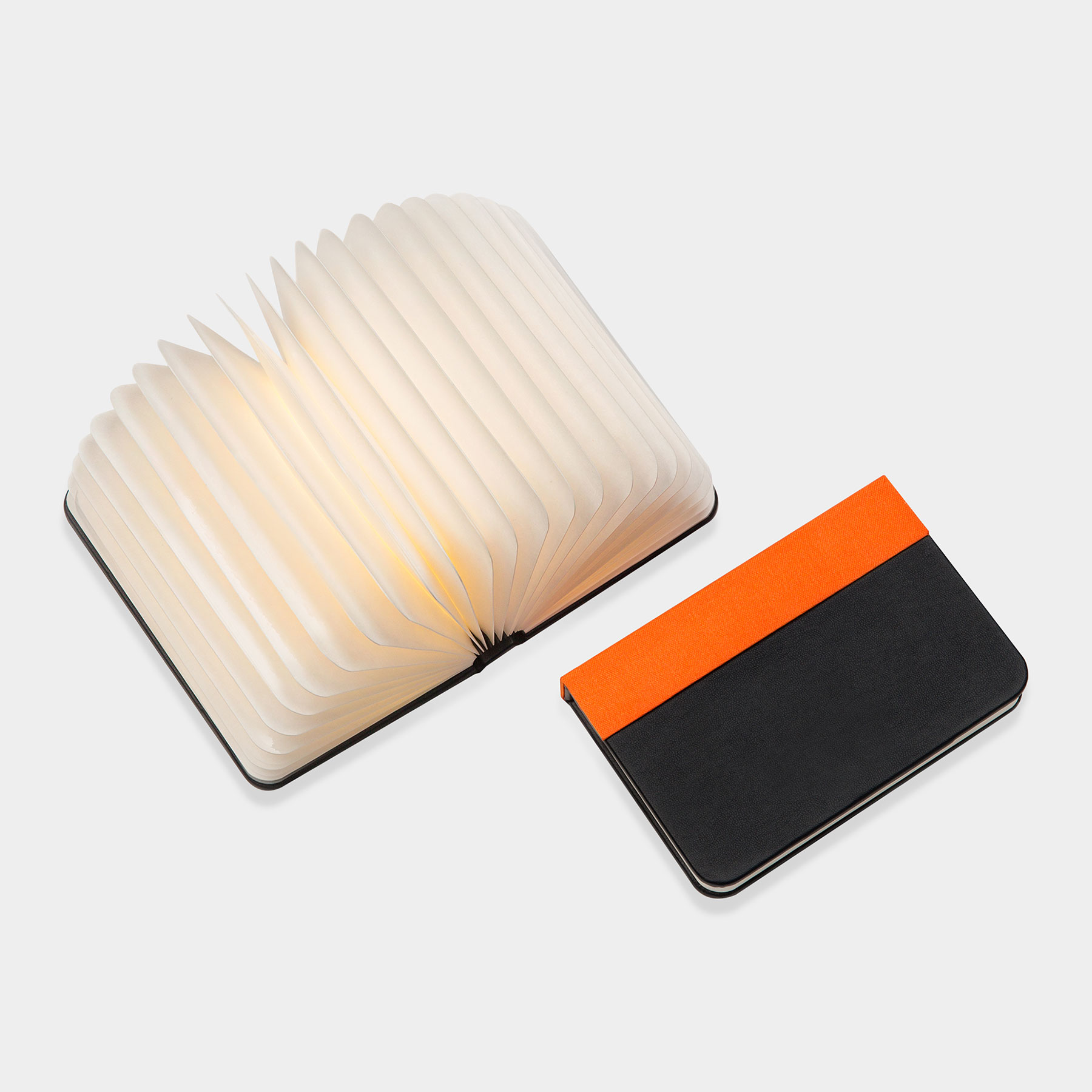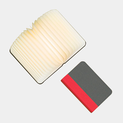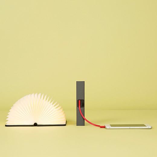 「Mini Lumio+(ミニルミオプラス)」は、9.5×14×3cmのコンパクトサイズ。文庫本よりも小さく、邪魔にならないサイズ感だ。360度まで開くことが可能で、表紙に内蔵された強力なマグネットにより、金属板に設置することもできる。